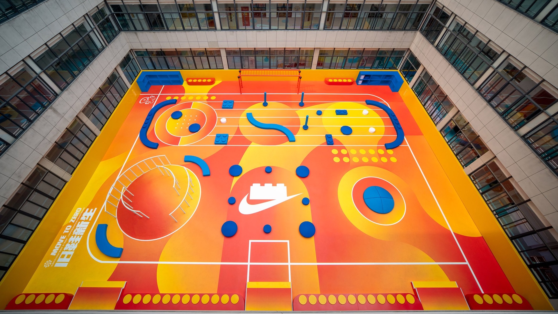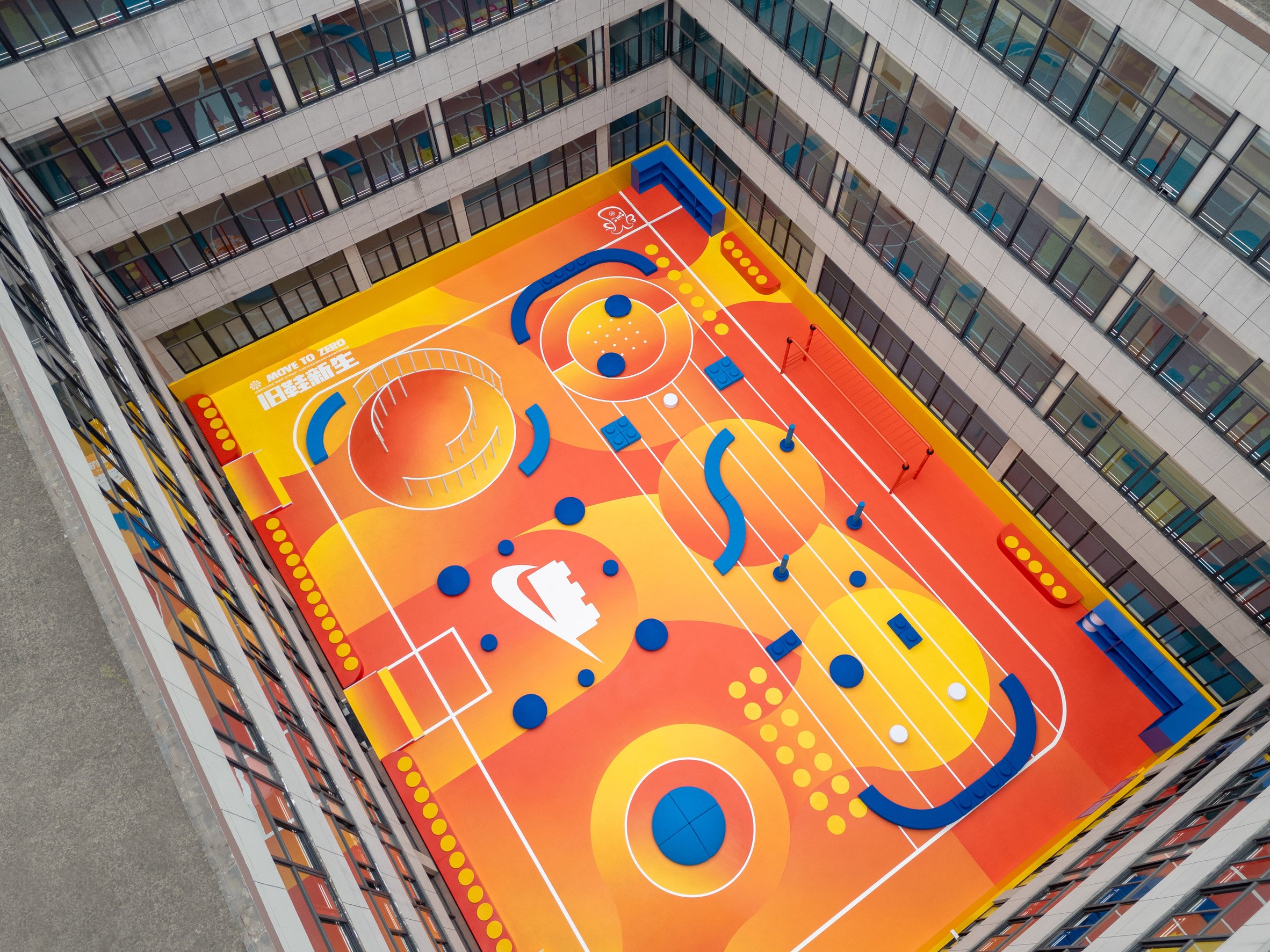 Le studio de design OLA Shanghai a collaboré avec la marque de jouets Lego et la marque de sport Nike pour créer une aire de jeux singulière et ludique dans une école primaire de Shanghai, en Chine.