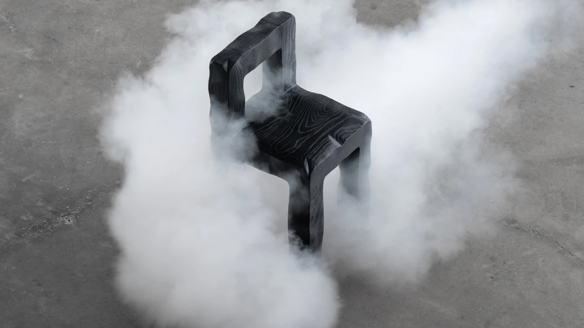Ancrée dans l’idéalisme forestier de John Muir, la collection propose une traduction poétique de l’épuisement professionnel en processus matériel. La technique Shou Sugi Ban, une ancienne méthode japonaise de préservation du bois par le feu, n’est pas une simple élégance esthétique. Elle devient ici métaphore : l’expérience de l’épuisement et de la régénération du designer prend forme dans le veinage noirci du frêne, évoquant la transformation par la flamme.