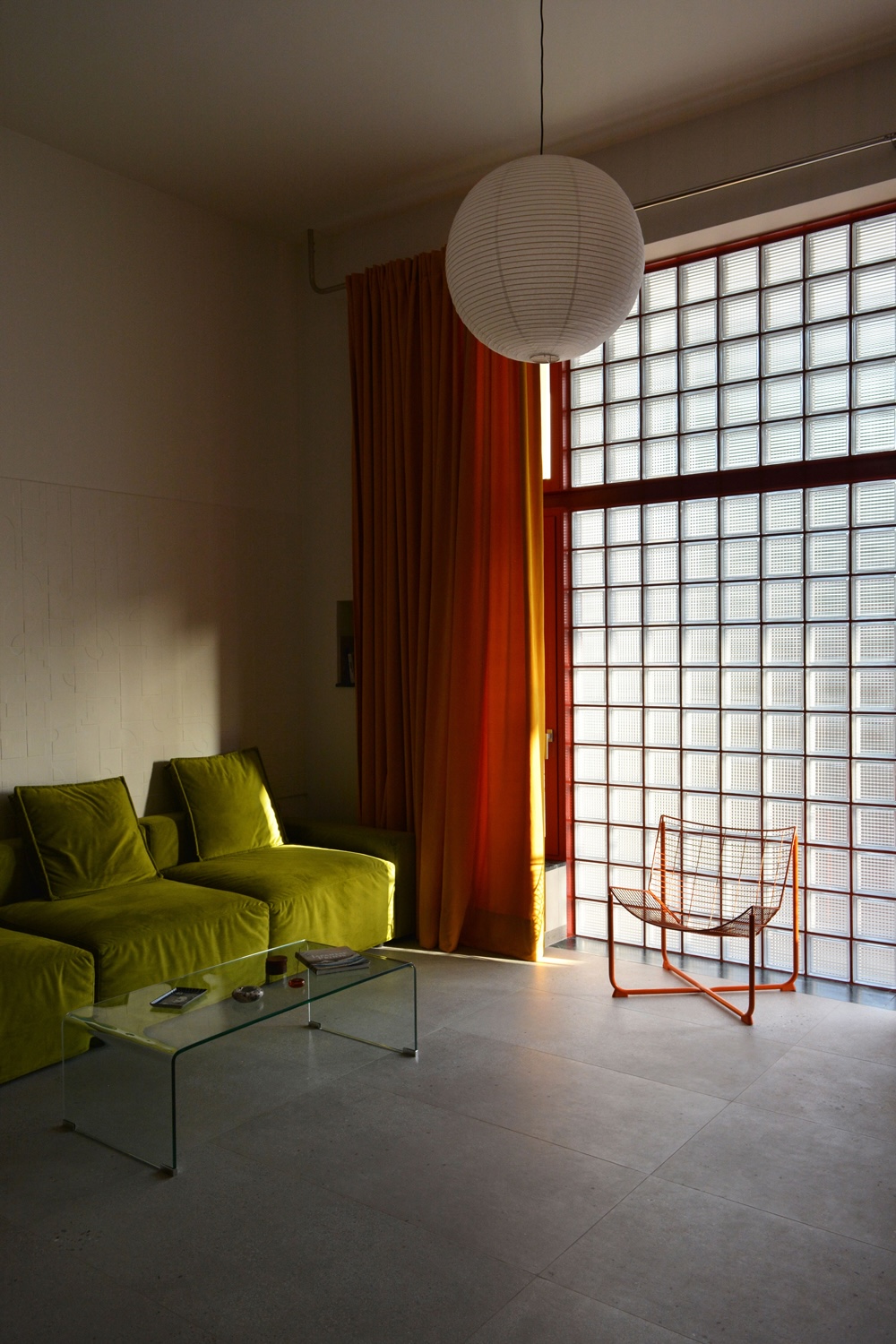 L’espace « loft », véritable pièce architecturale, a été pensé comme l’élément clé du projet. Il intègre de multiples services, dont la cuisine, la salle à manger, la zone détente et les rangements. En souvenir de sa première utilisation, le nouvel espace se compose de structures en acier rouge et de meubles sur mesure en acier inoxydable.