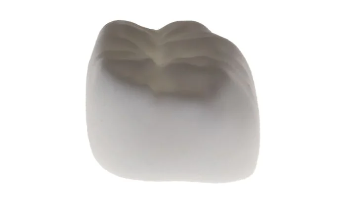 Une couronne dentaire finie créée à l’aide de la technologie mise au point par les chercheurs de l’université du Texas à Dallas (crédits photo : Université du Texas à Dallas).