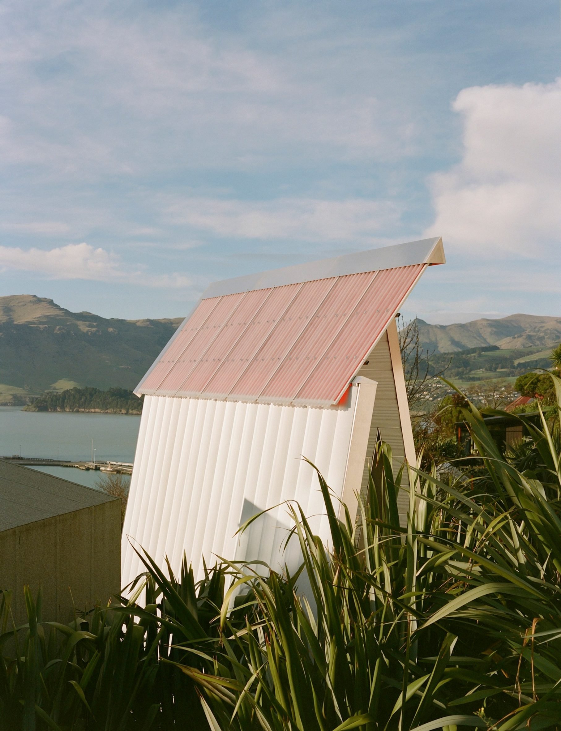 Le studio néo-zélandais Bull O’Sullivan Architecture a érigé une chapelle compacte revêtue d’aluminium à flanc de colline, surplombant le port de Lyttelton, près de Christchurch.