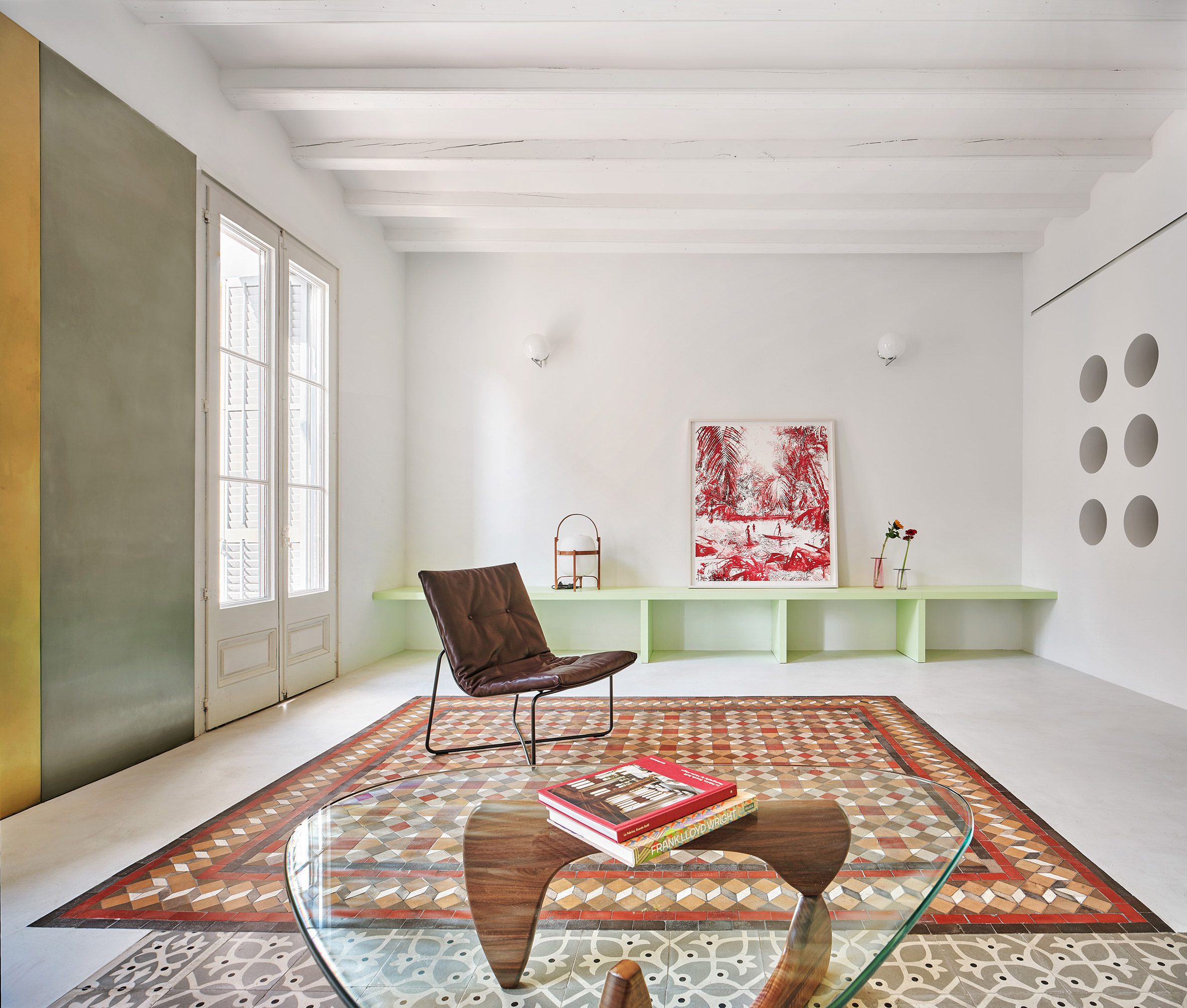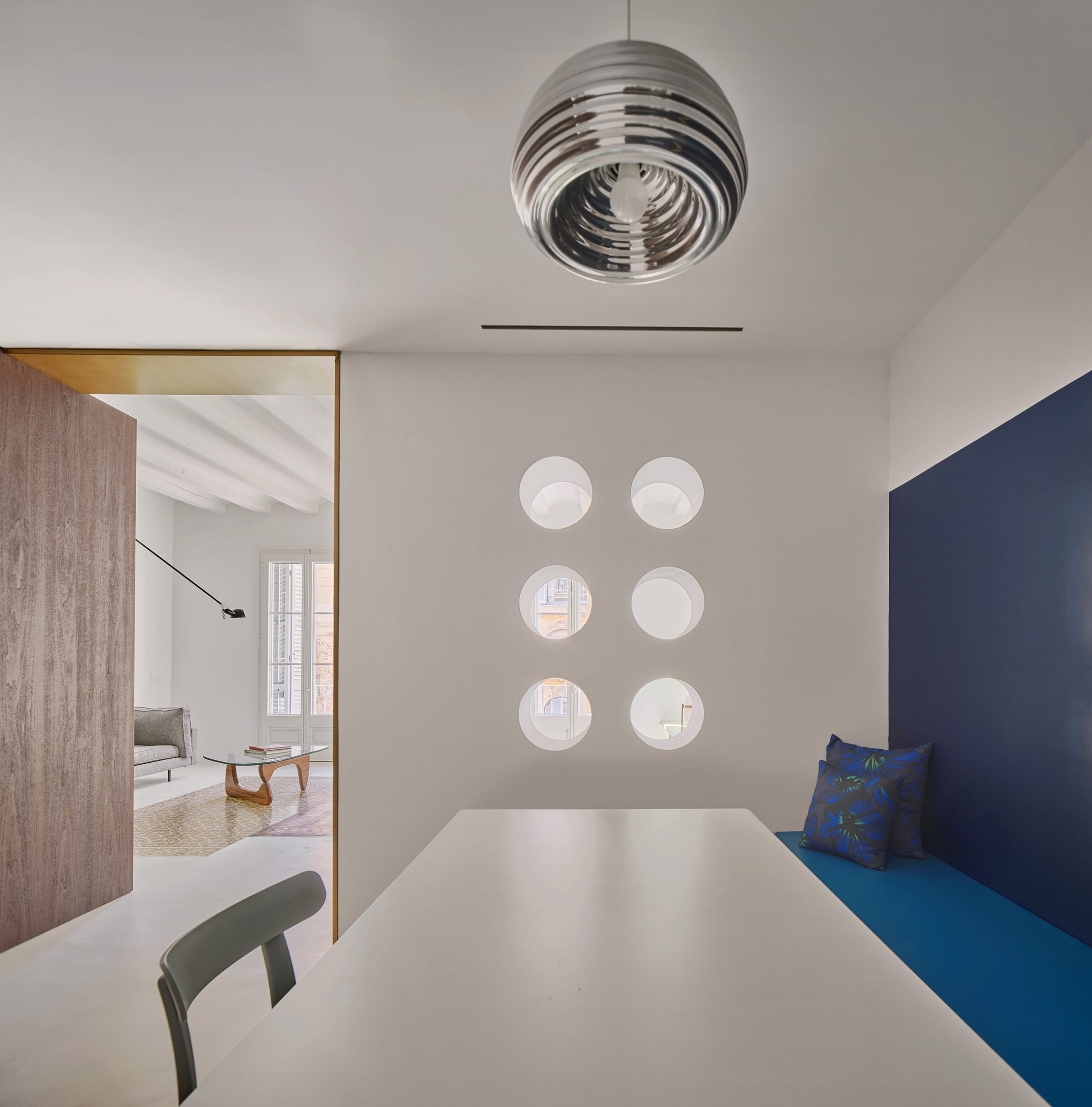 L’appartement de la rue Girona se situe dans un immeuble du XIXe siècle, au cœur du quartier huppé de la Dreta de l’Eixample à Barcelone. Il appartient à un couple passionné de design, parents de deux jeunes enfants.