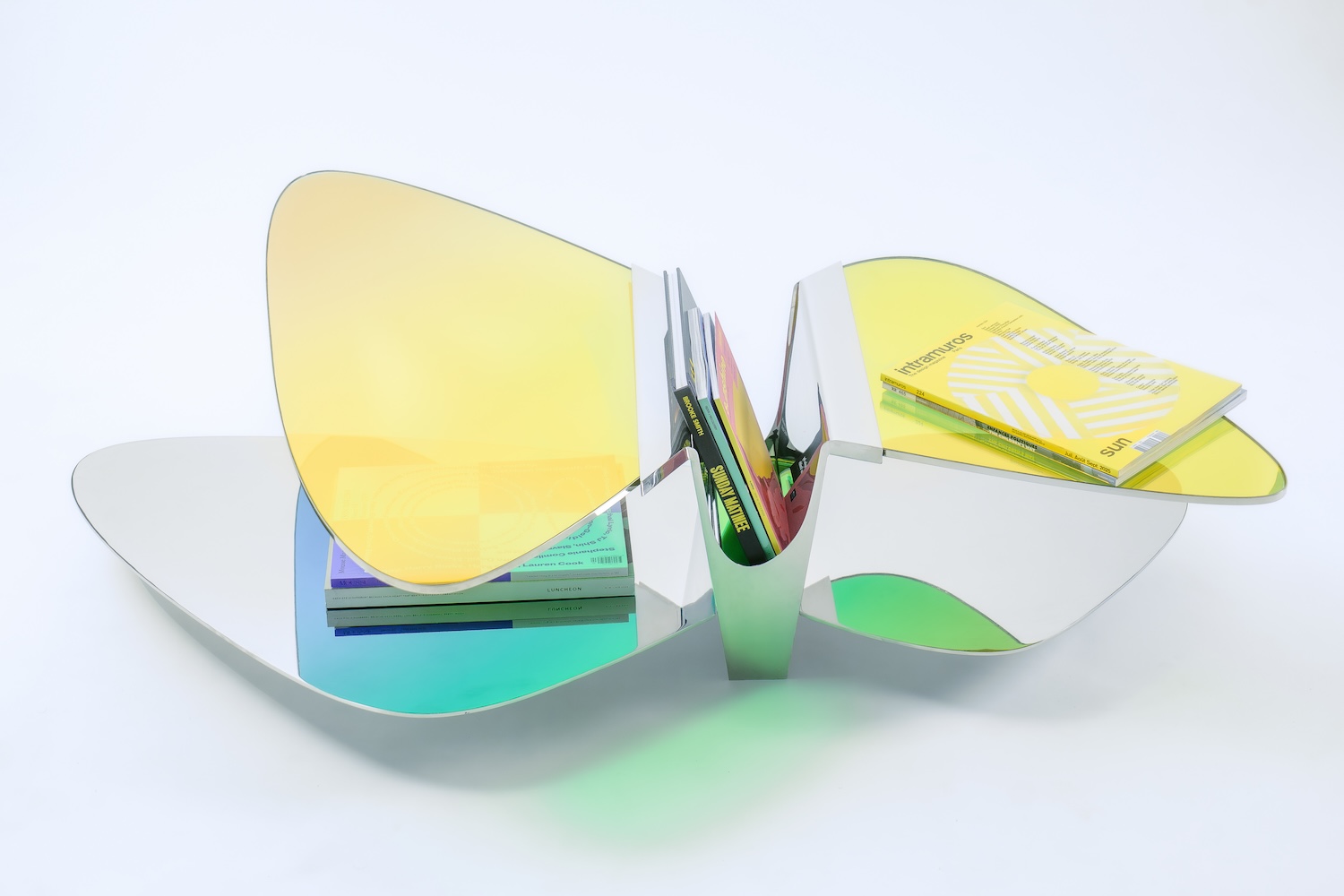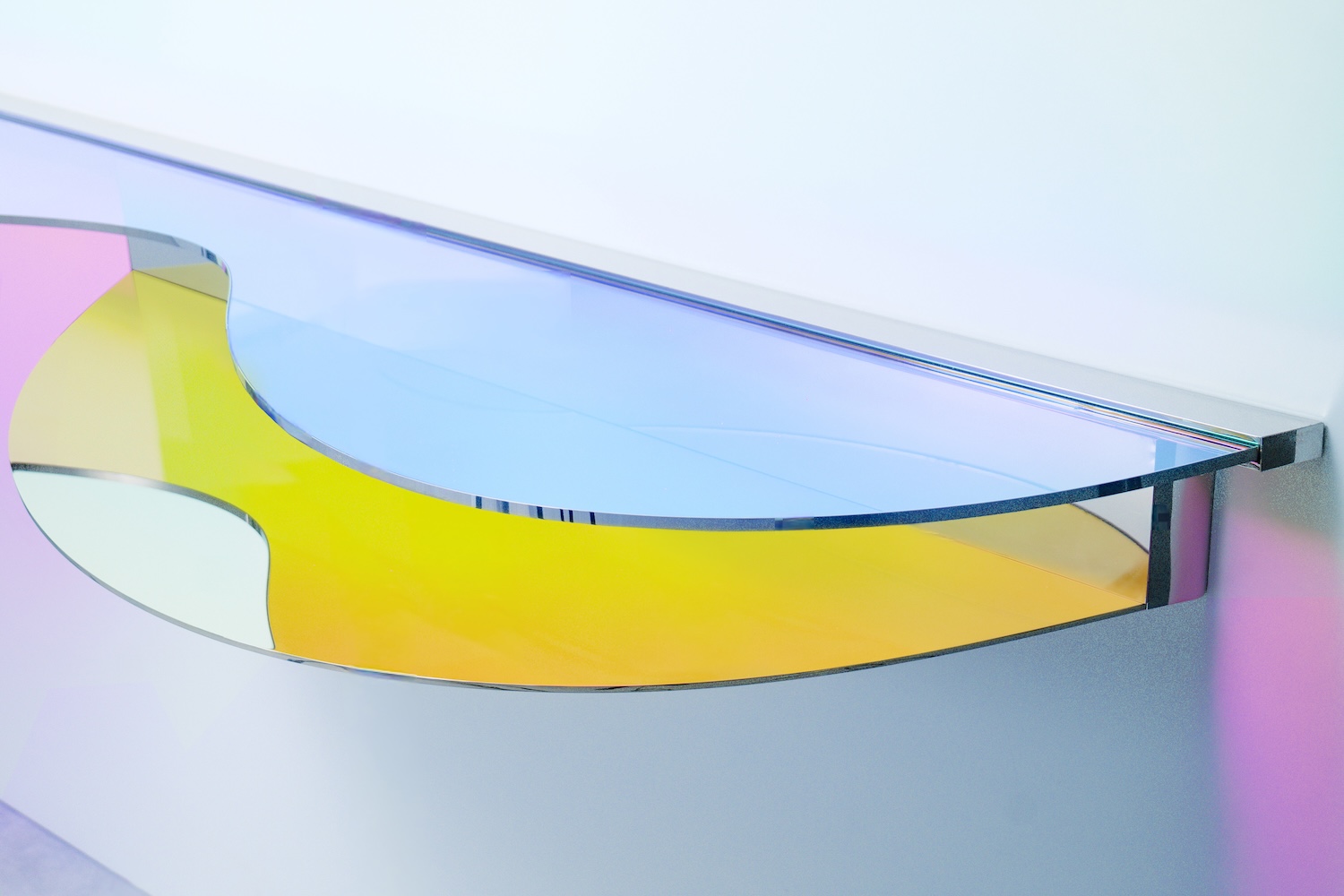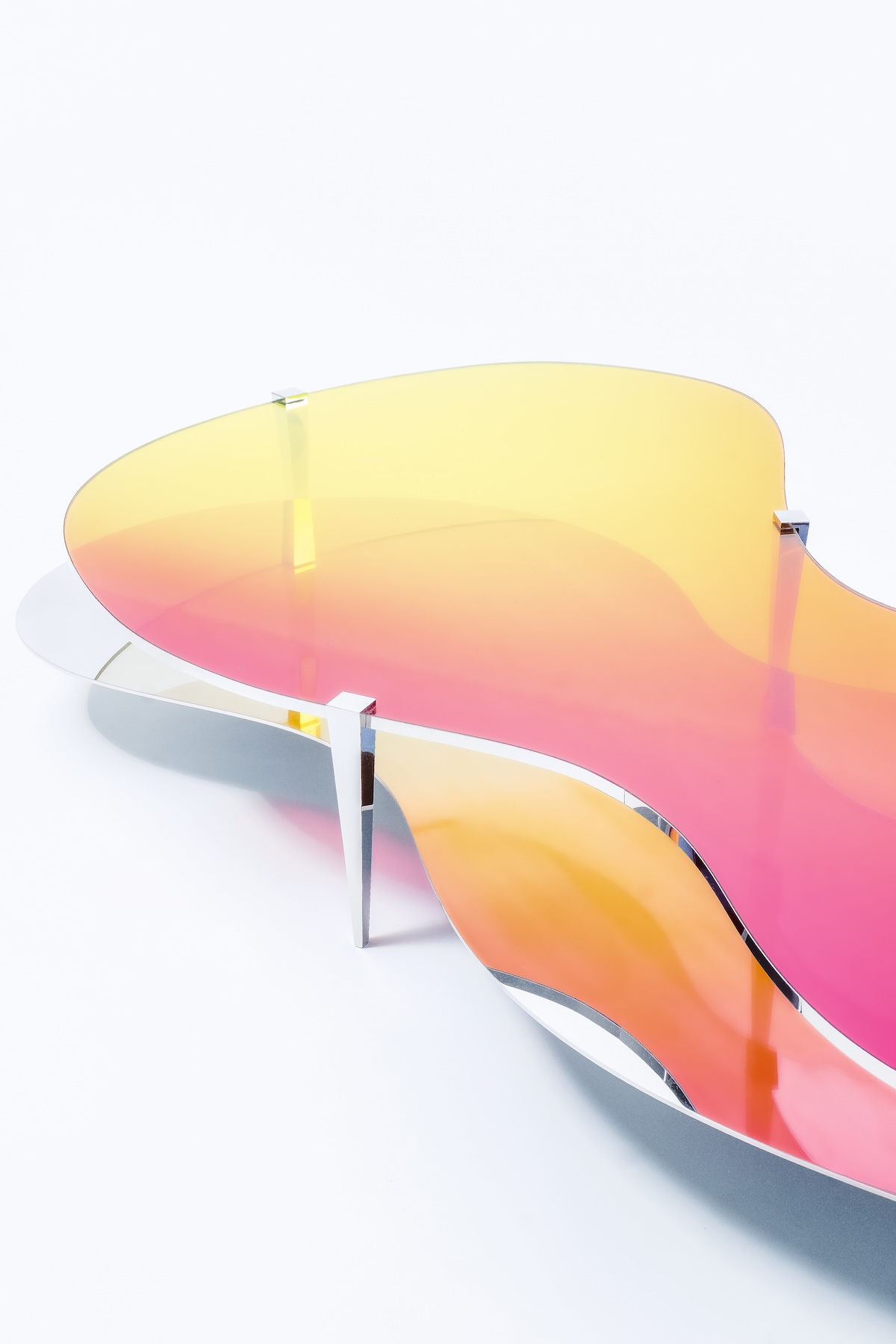 Avec la collection ODA LIK Variations, la créatrice franchit un nouveau seuil dans sa recherche. Ces pièces, réalisées en verre dichroïque et acier poli-miroir, semblent respirer sous la lumière. Selon l’angle, l’intensité ou la teinte du jour, elles changent de peau, se métamorphosent, offrant un spectacle mouvant de transparences et de reflets.