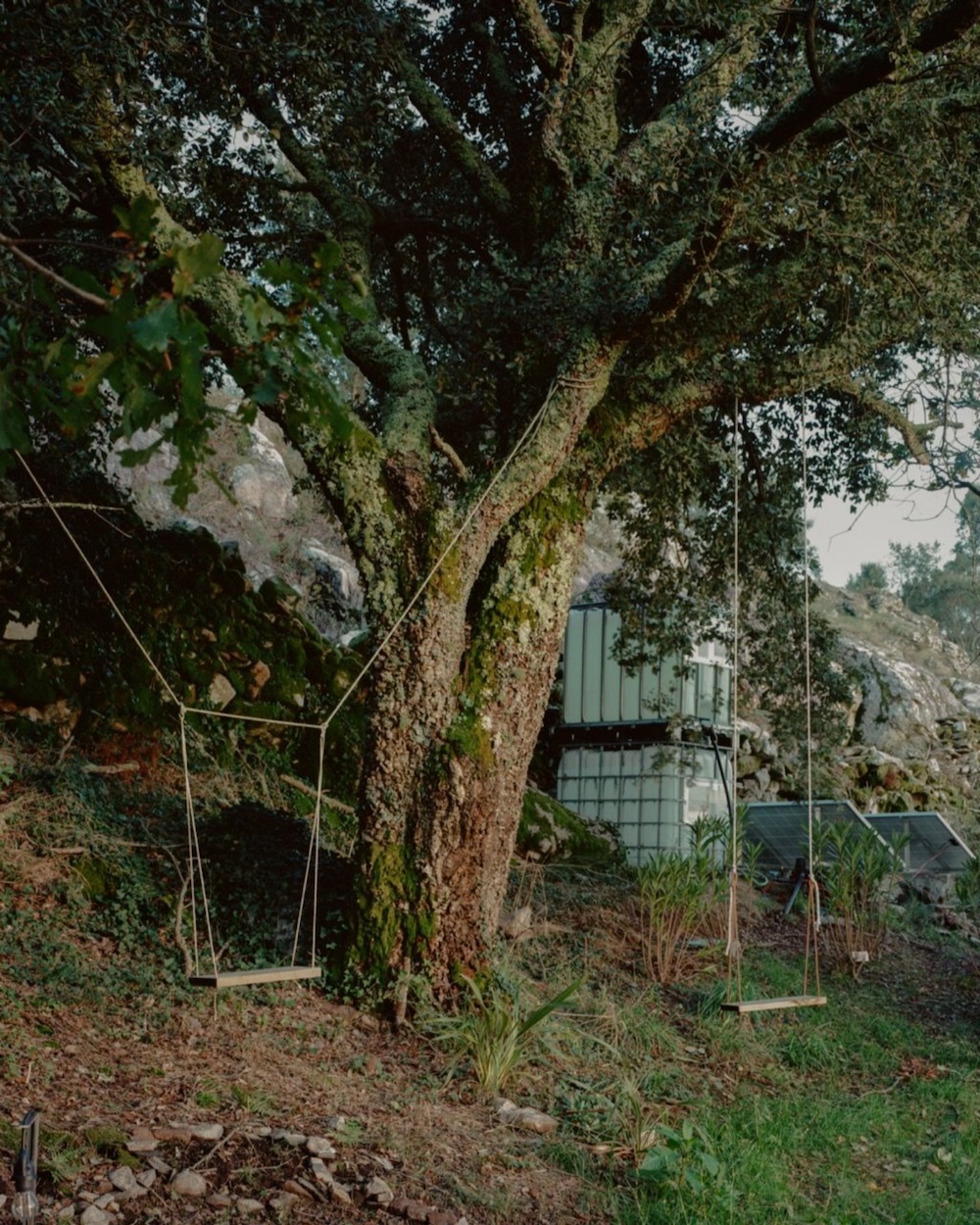 Ce qui était autrefois une ferme se transforme en une étude d’équilibre : entre architecture et paysage, abri et ouverture, délabrement et renaissance. Trois des pièces d’origine du bâtiment sont restaurées en espaces clos et chaleureux, préservant l’intimité de la vie intérieure. Les quatre espaces restants sont ouverts aux éléments, devenant des pièces extérieures où les murs encadrent le ciel et où la végétation commence à reconquérir le sol.