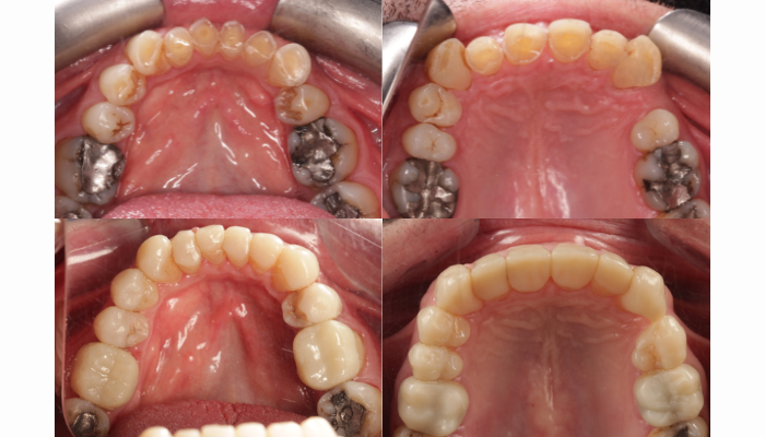 De gauche à droite et de haut en bas, l’impression 3D a permis d’atténuer l’usure dentaire importante des patients.