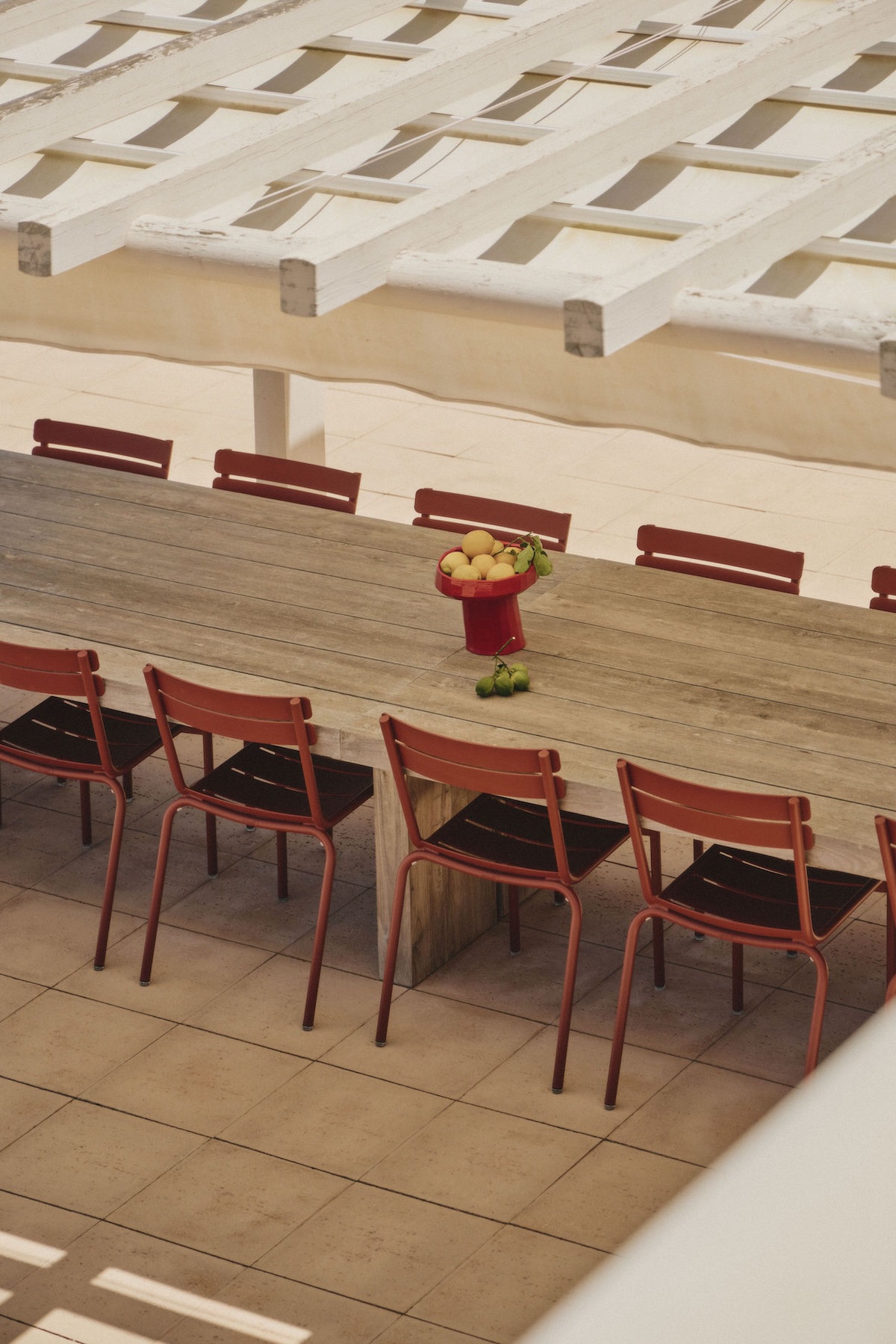 Les murs sont peints à la chaux, les sols sont revêtus de carreaux de terre cuite, tandis que les menuiseries aux tons sombres apportent de la profondeur. Le bois, la céramique et le lin ajoutent une touche de chaleur, renforçant le lien entre l’intérieur et le paysage environnant. Le savoir-faire artisanal joue également un rôle déterminant.