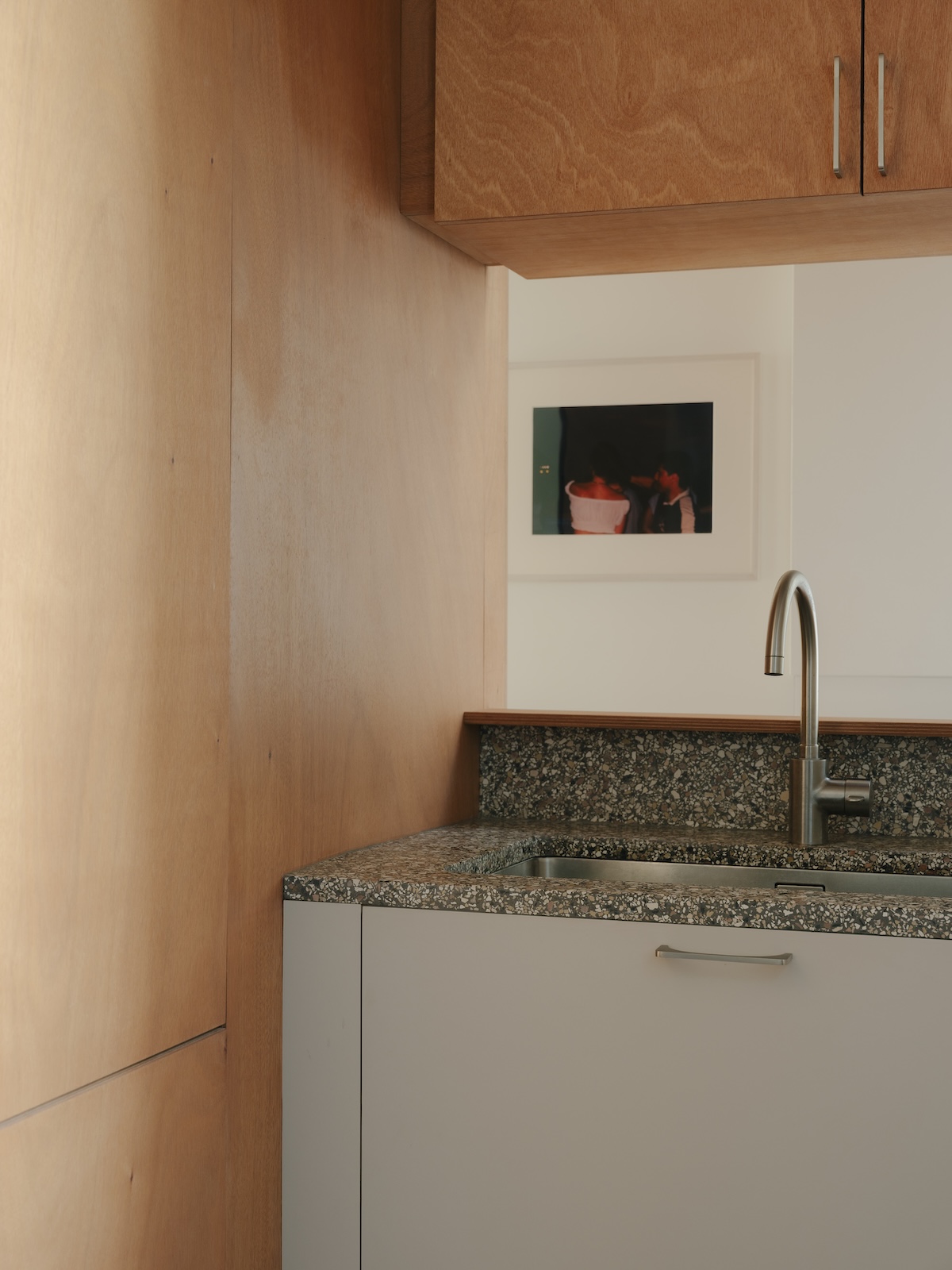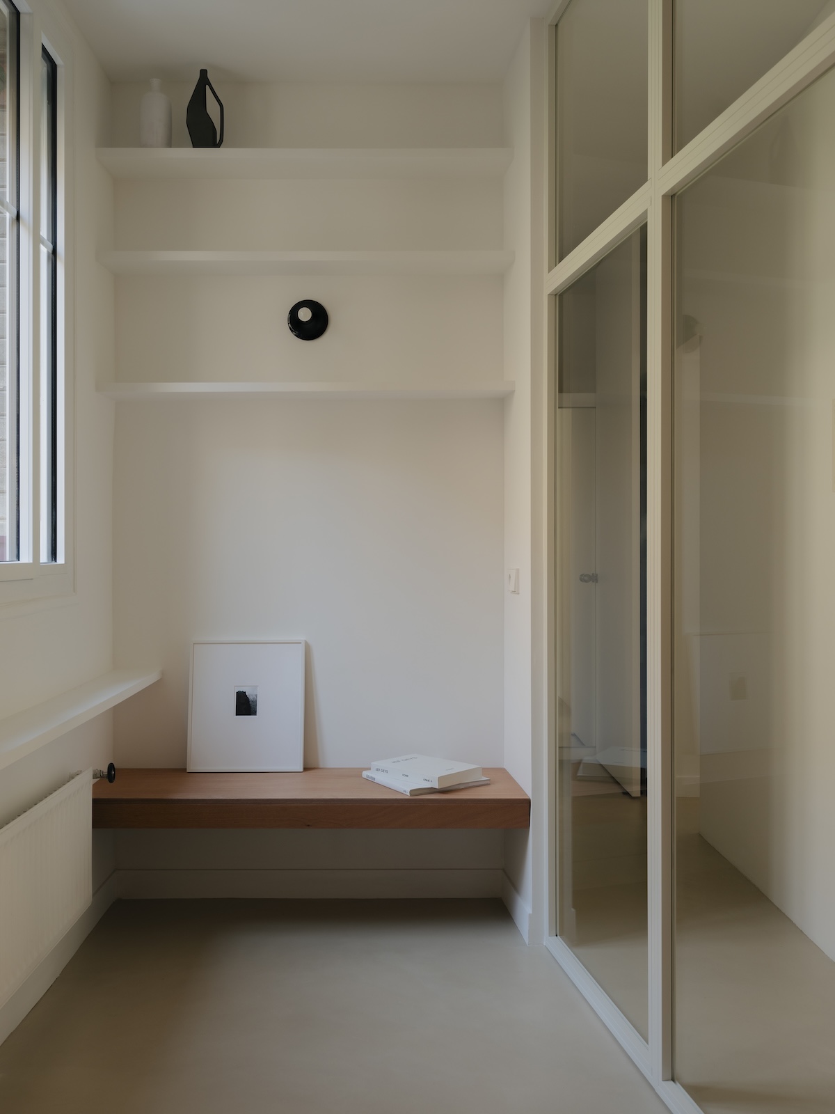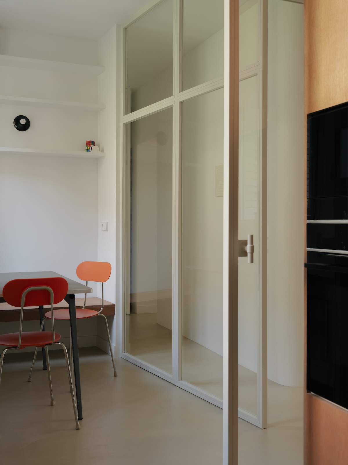Le logement répond à un besoin d’efficacité lié aux usages d’une famille de 4 personnes, tout en dialoguant avec un désir de contemplation, lié à la passion pour l’art contemporain de ses habitants.