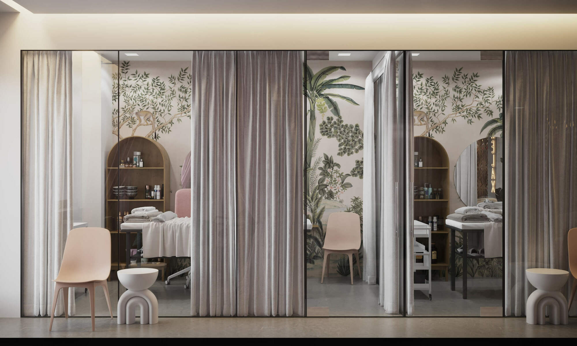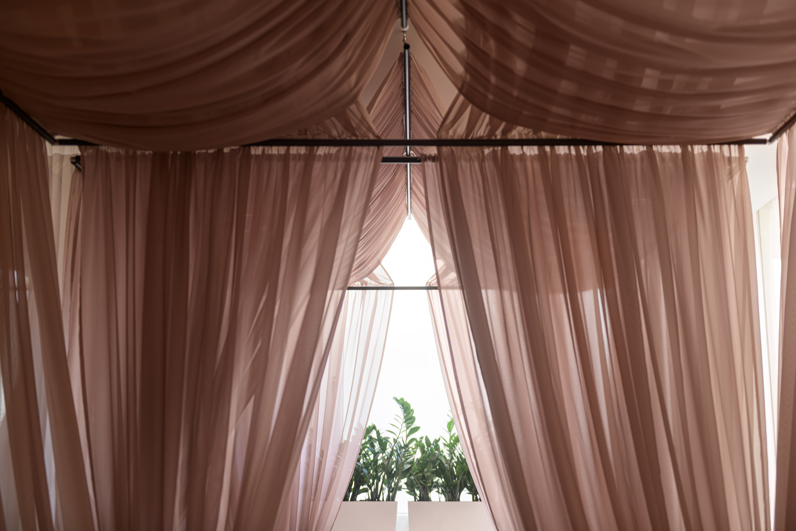 Le premier, ouvert et effervescent, accueille les clientes dans une ambiance chaleureuse où la socialisation se mêle à l’attente. Assises sur des fauteuils en forme de citrouille ou bercées sur des balançoires suspendues, elles profitent d’un espace vivant, presque joueur.