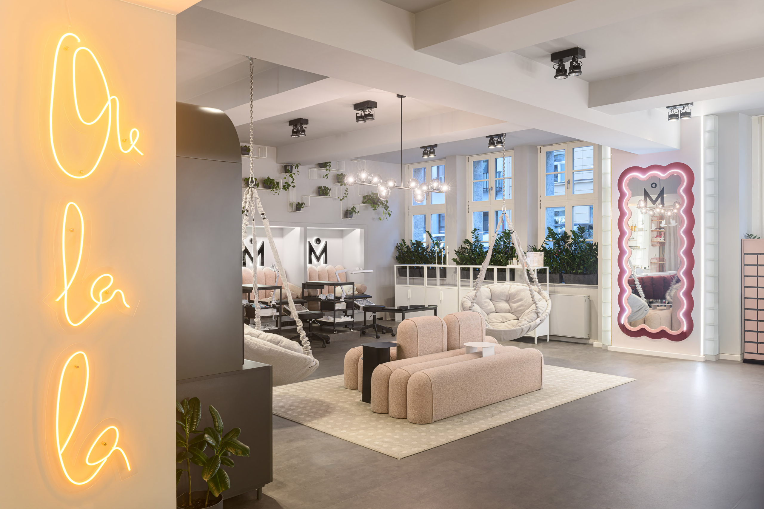 « Nous nous sommes délibérément éloignés du style néoclassique habituel. Pour Munich, nous avons voulu un souffle pop art, un esprit graphique et pétillant, avec des motifs, des formes arrondies, des néons, des touches de vert.
