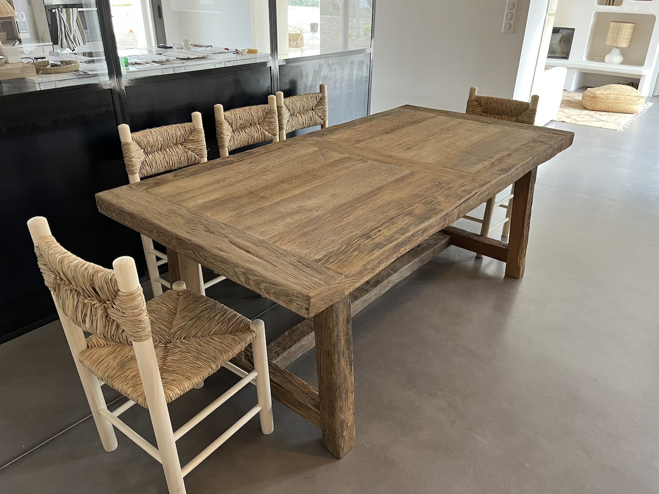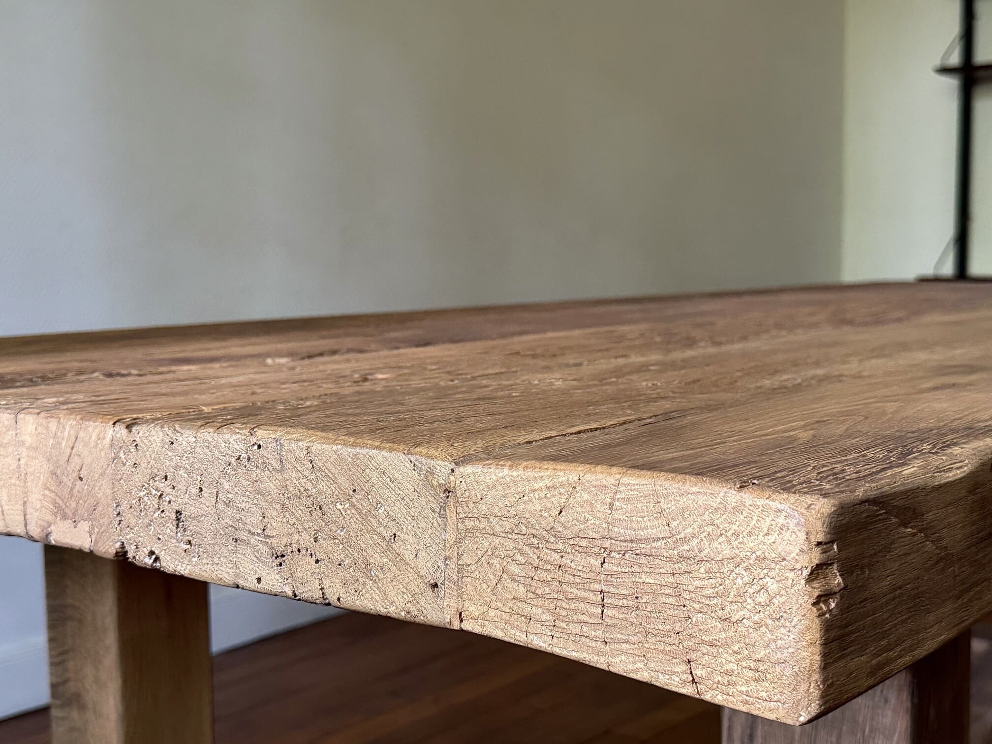 Chaque pièce conserve ainsi le caractère naturel du chêne ancien tout en devenant un meuble solide, durable et résolument intemporel.