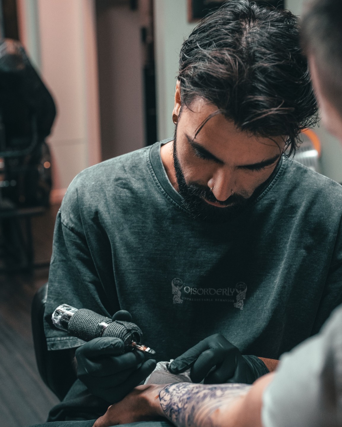 Si le résultat final est spectaculaire, le processus l’est tout autant. Chez Inksane, le tatouage commence par une conversation. Le client partage un souvenir, une émotion, une direction esthétique ou parfois une simple envie. L’artiste analyse les lignes du corps, le mouvement de la zone à tatouer, les contrastes naturels de la peau — autant d’éléments qui influencent la composition.