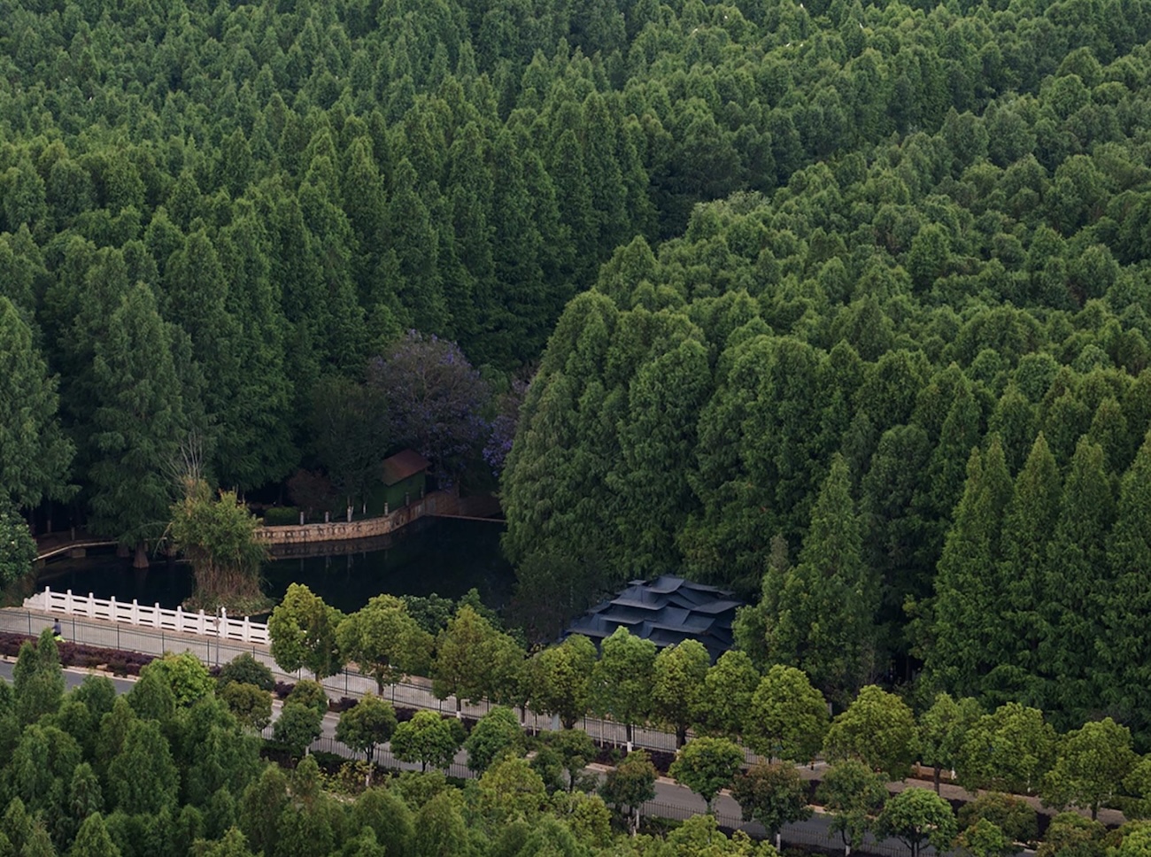 Le site du projet est crucial : la zone humide est un élément vital de l’infrastructure de purification de l’eau de la ville, le dernier filtre naturel avant que l’eau n’atteigne le lac Dianchi. Son utilisation informelle par les habitants pour la pêche de loisir lui a valu le nom de Pavillon de la Pêche. L’Atelier Deshaus a répondu à cette situation unique – un lieu de rencontre entre nature et infrastructure – en créant une forêt artificielle de fines colonnes d’acier.