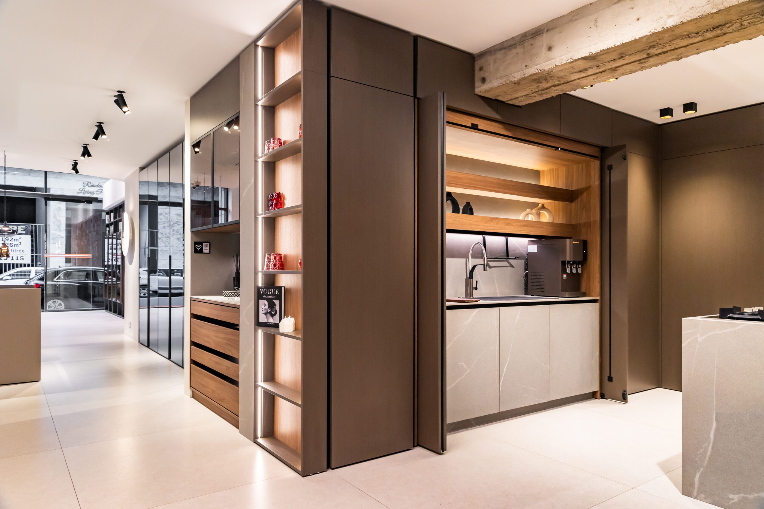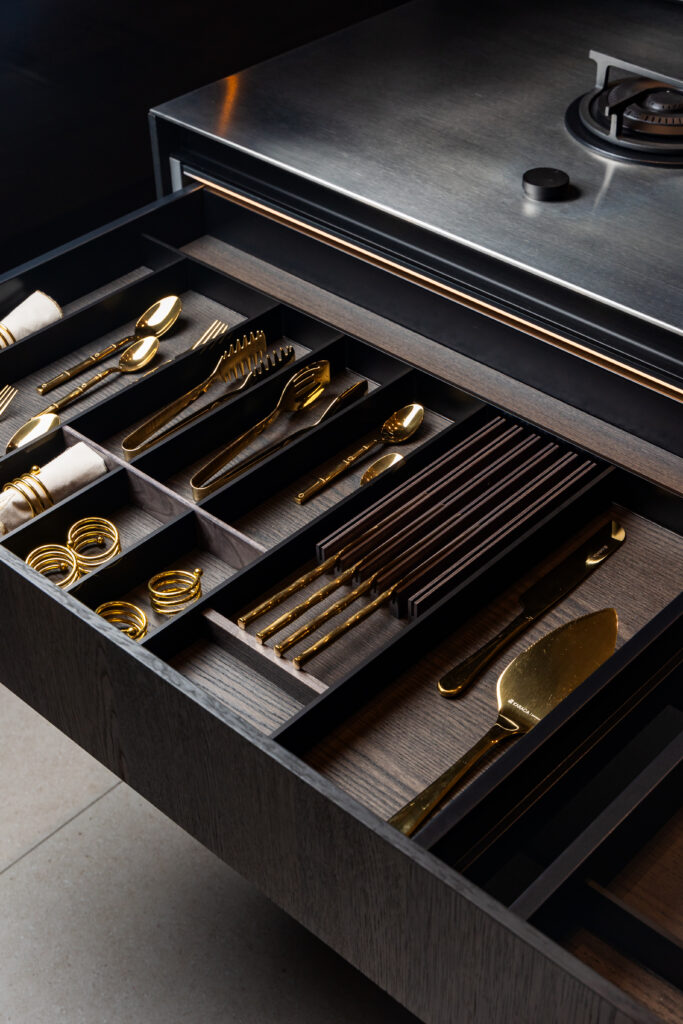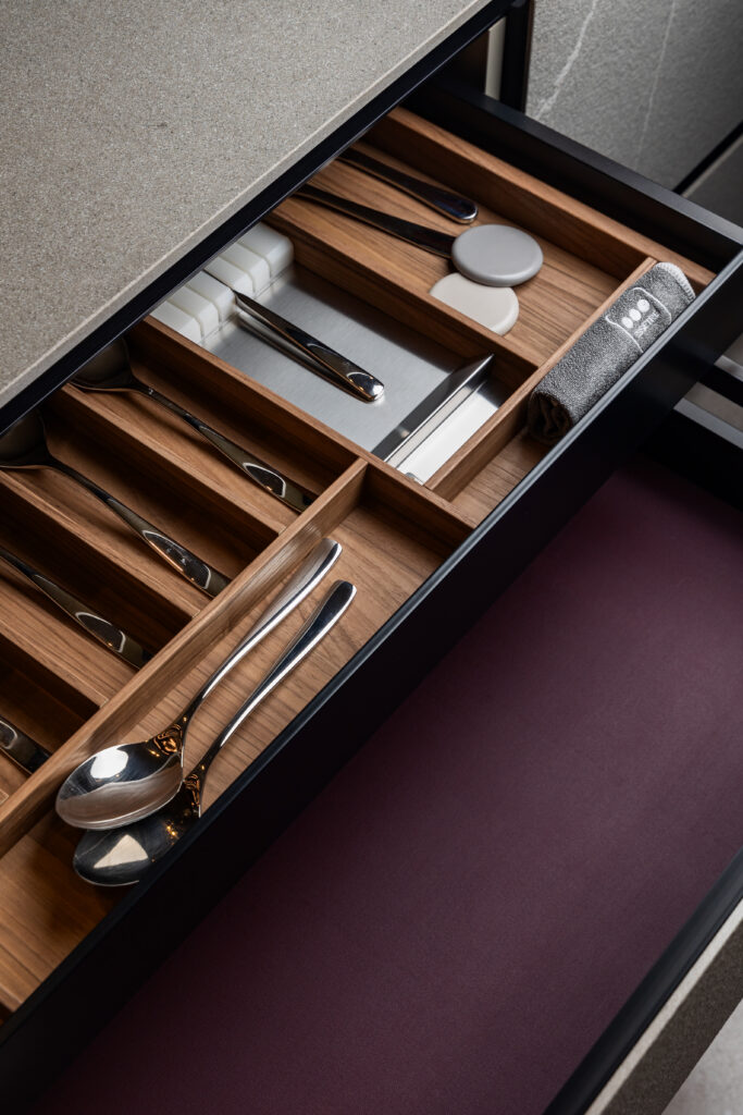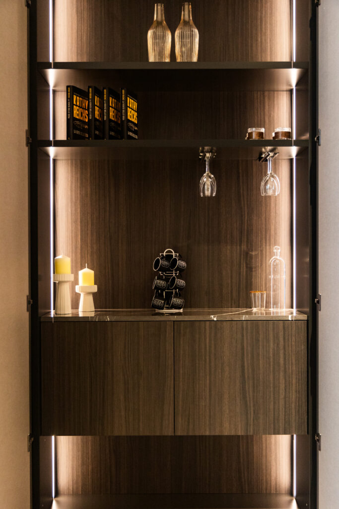 Fidèle à son ADN, Bohaus conçoit des cuisines où la beauté se fond dans l’usage. Les modules muraux, les rangements dissimulés, les éclairages intégrés et la finesse des finitions italiennes témoignent d’un savoir-faire précis, pensé pour durer.