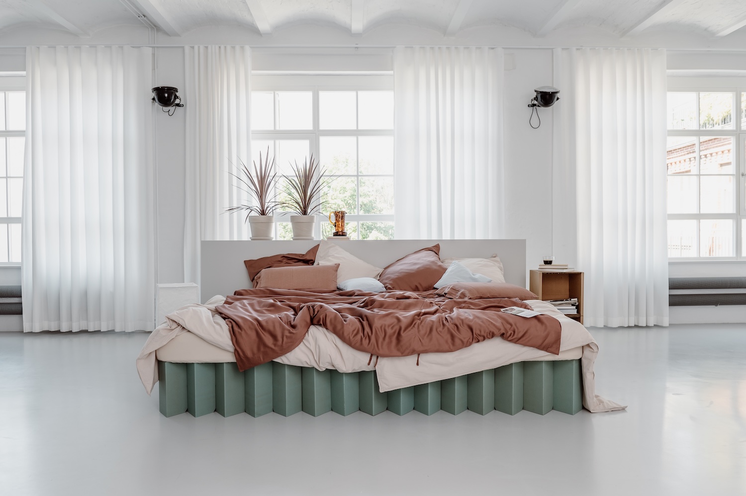 Le Lit 2.0 est 280 fois plus écologique qu’un lit conventionnel. Pas de matériaux superflus, pas de gaspillage, aucun compromis sur l’esthétique ou la fonctionnalité. Le lit est complété par des accessoires assortis tels que des têtes de lit, du linge de lit de haute qualité ou des couettes souples – tous conçus pour harmoniser la pièce.