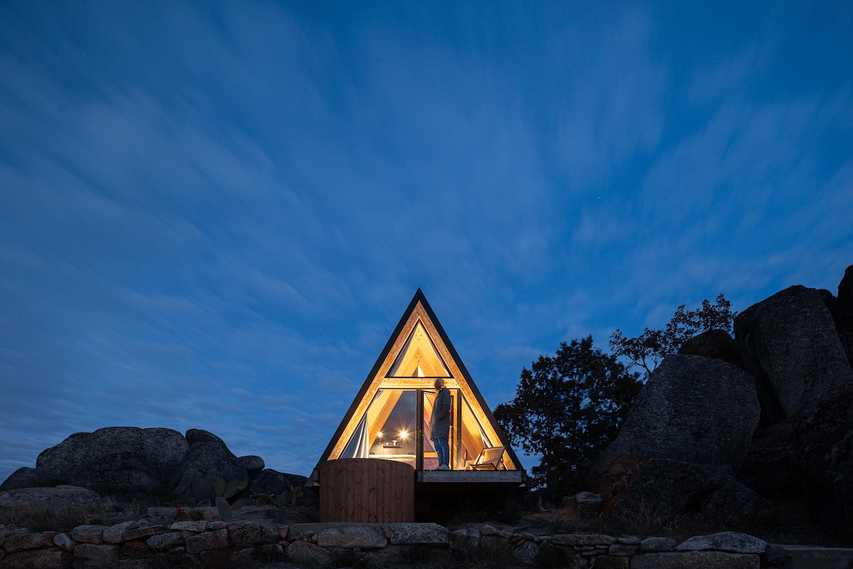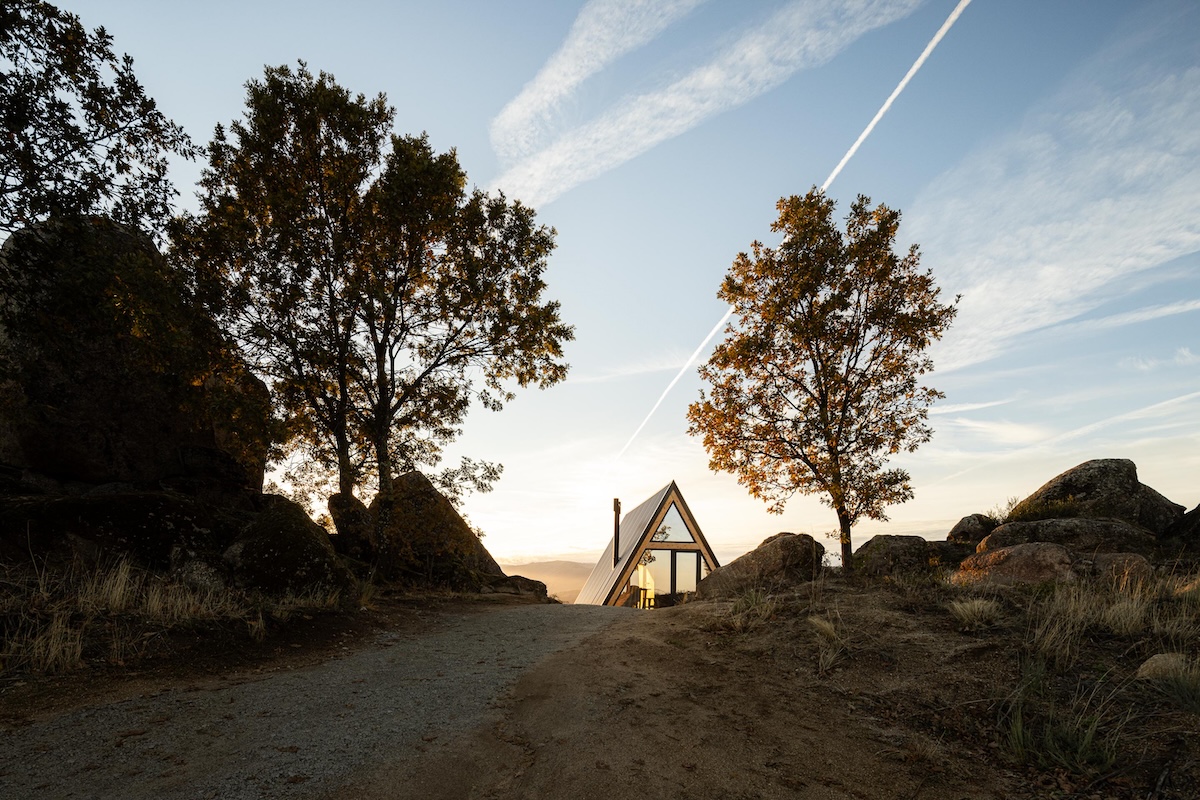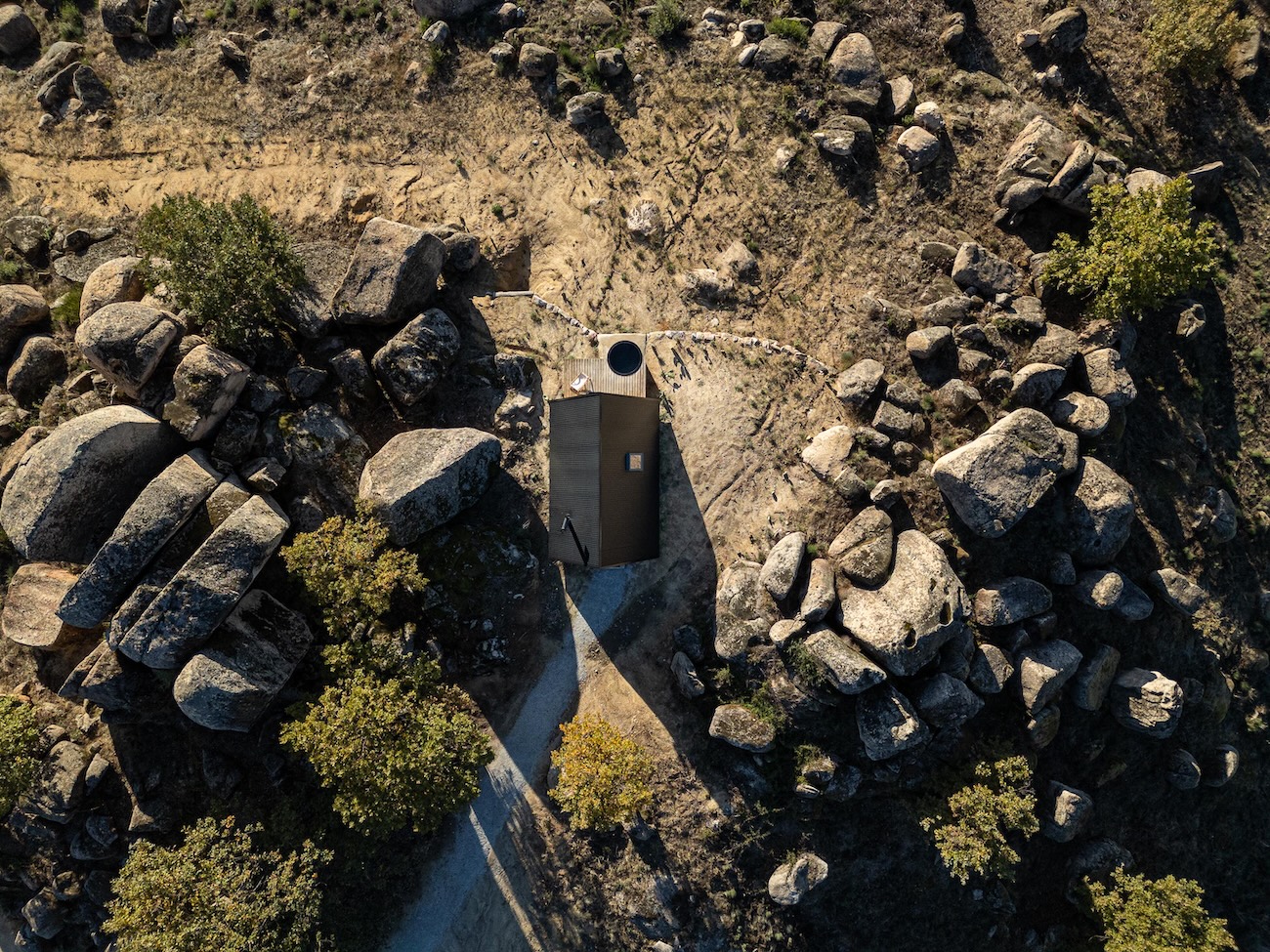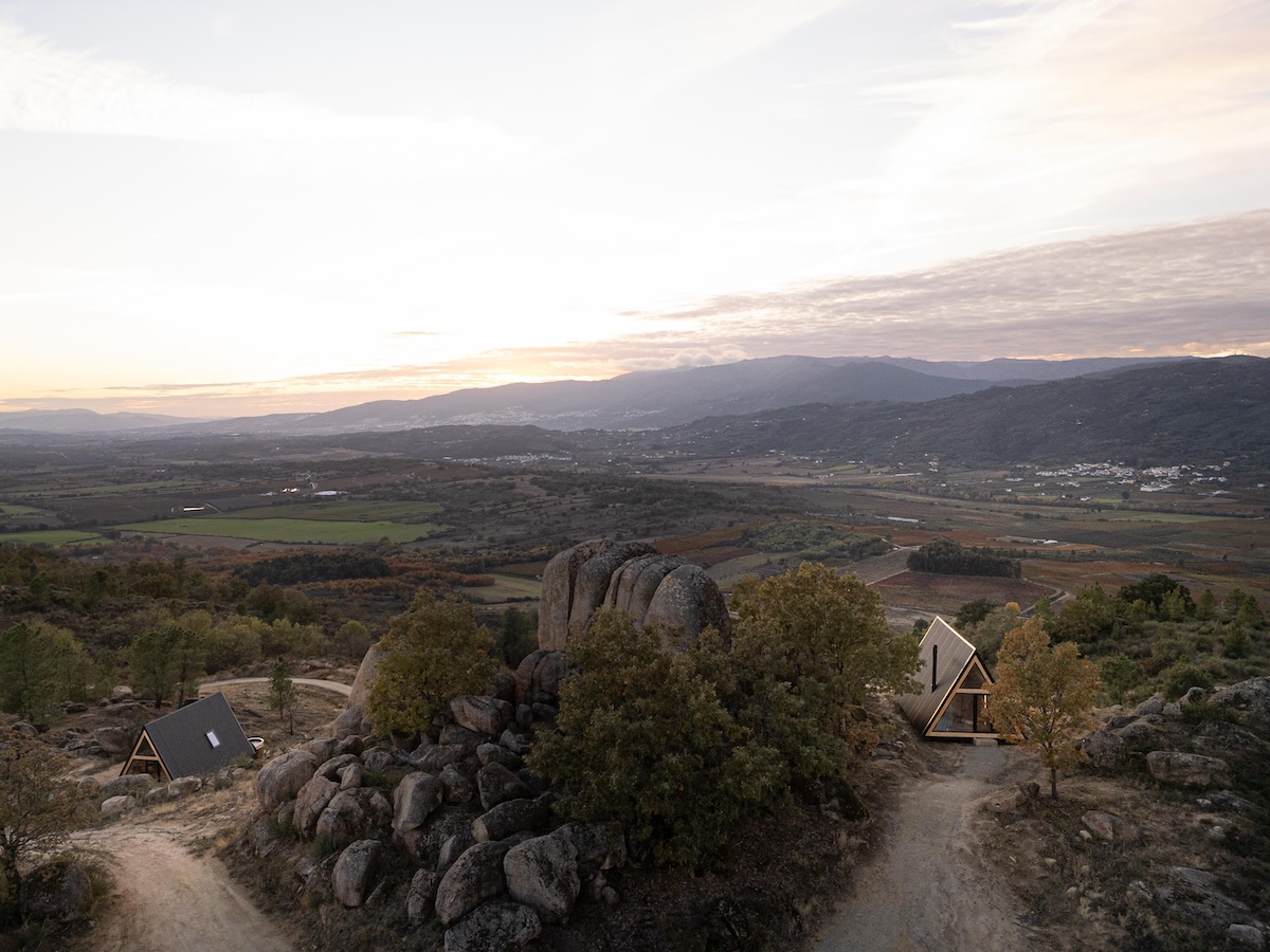 Camouflés parmi la végétation endémique et les affleurements rocheux, ces refuges sont stratégiquement orientés vers la vallée de la Cova da Beira, offrant des vues imprenables sur la Serra da Estrela, le plus haut sommet du Portugal continental. Leur emplacement respecte le contexte naturel du site ainsi que le profil topographique de la montagne, permettant aux utilisateurs de s’immerger dans des paysages d’une grande beauté naturelle.