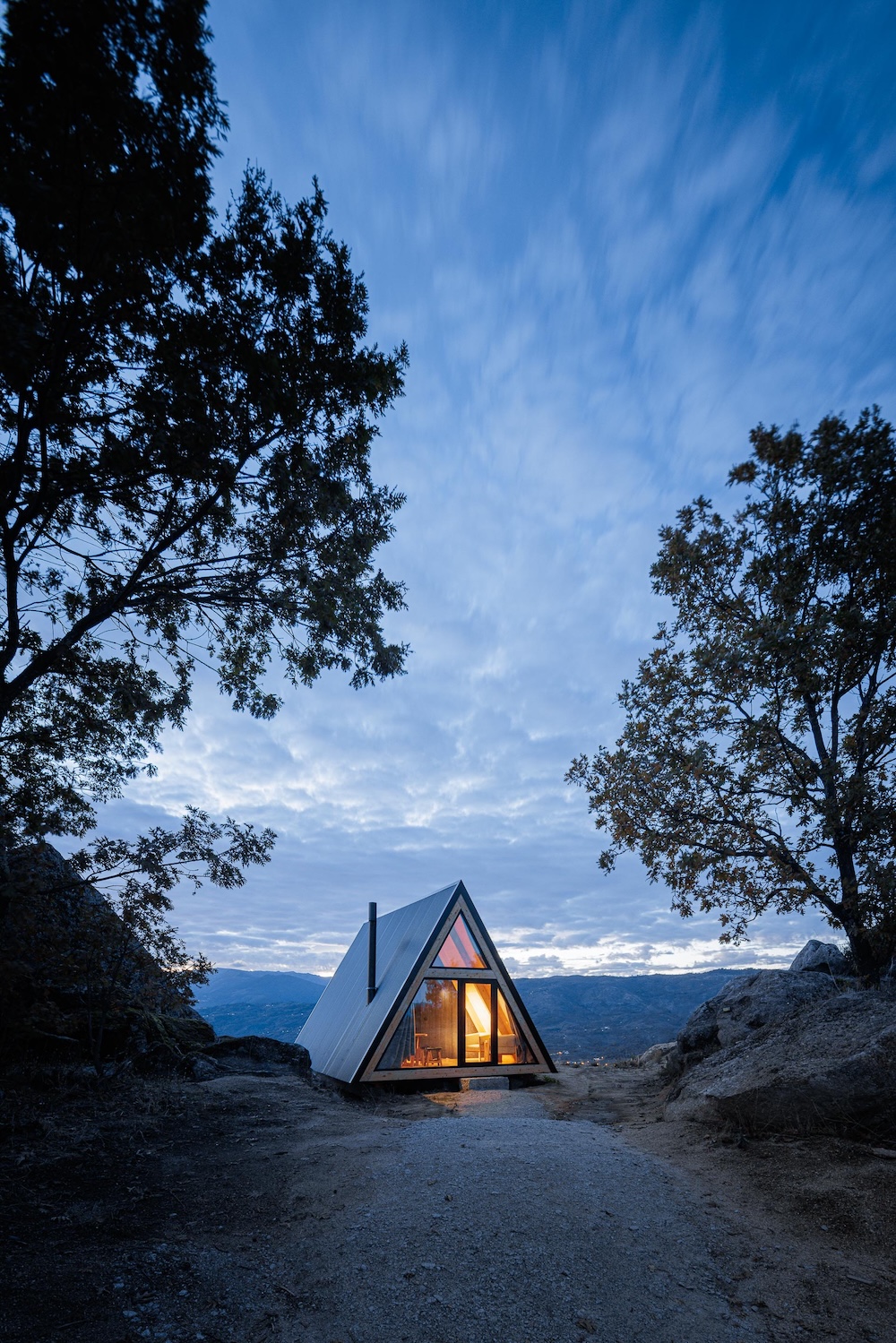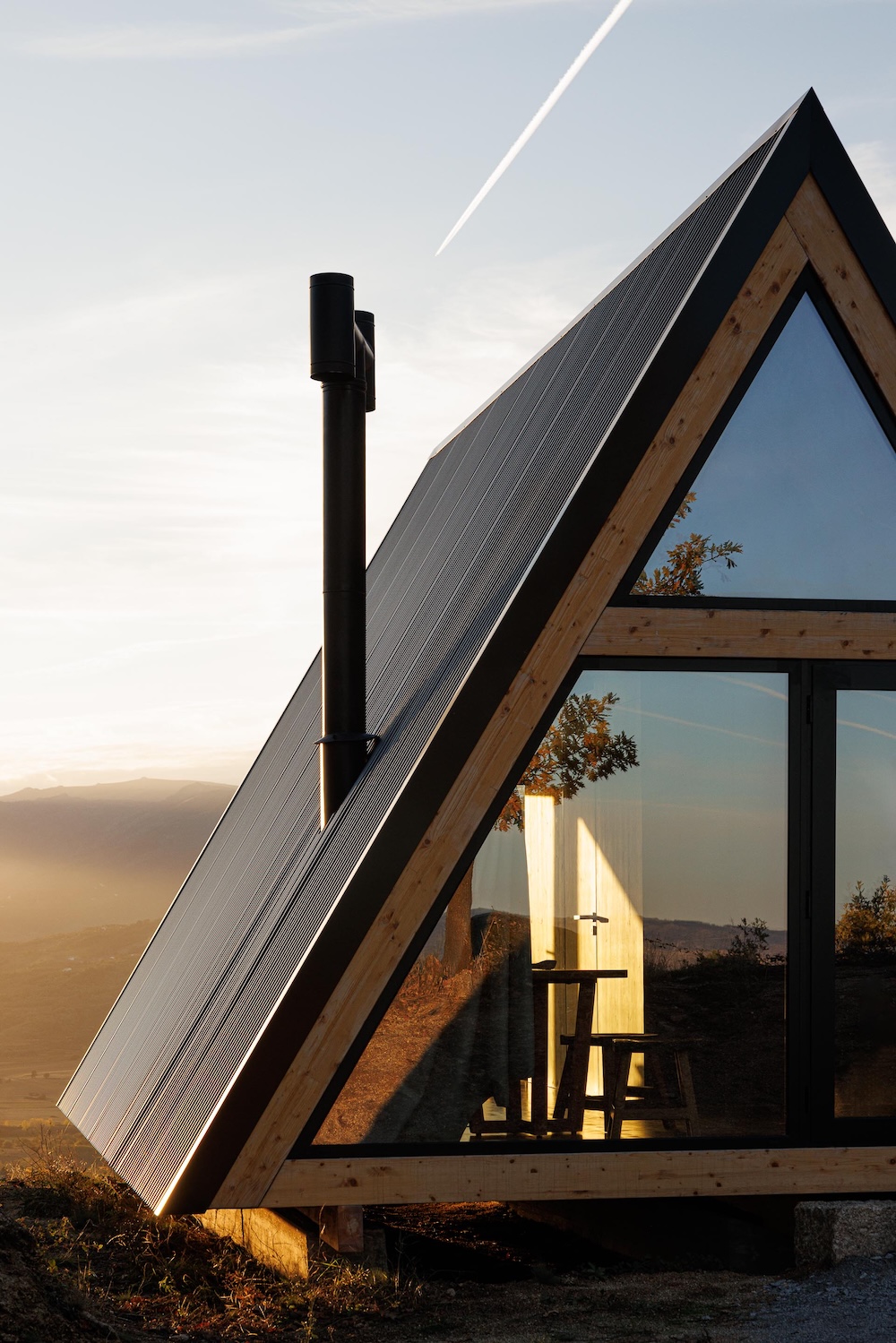 L’objectif de la création de ces refuges de montagne était d’offrir des espaces et des expériences en pleine communion avec la nature, même dans des lieux reculés, selon des principes de développement durable. L’assemblage simplifié et modulaire de chaque abri aboutit à un volume compact aux lignes épurées : un prisme triangulaire équilatéral conçu comme un seul corps, où le volume de la salle de bain et des rangements est le seul élément séparant les espaces de vie et de couchage.