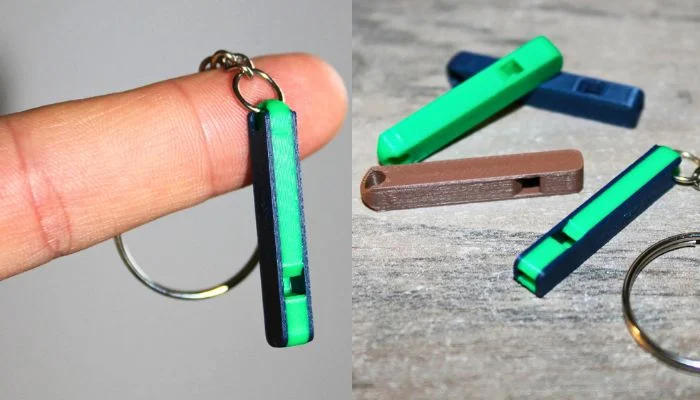 Petit par la taille mais grand par ses performances, ce mini sifflet ultra-compact émet un son puissant tout en utilisant très peu de matériaux. Pesant seulement 0,6 gramme et s’imprimant en quelques minutes, il produit un son d’alerte d’environ 100 dB. Cela en fait un accessoire pratique à ajouter à un porte-clés pour un usage quotidien. Adapté aux situations d’urgence, aux activités de plein air ou à la sécurité personnelle, son design allie efficacité, puissance sonore et vitesse d’impression. Un excellent exemple de la façon dont un design intelligent peut transformer une impression rapide et nécessitant peu de matériaux en un objet véritablement utile. Le fichier STL est disponible ici.