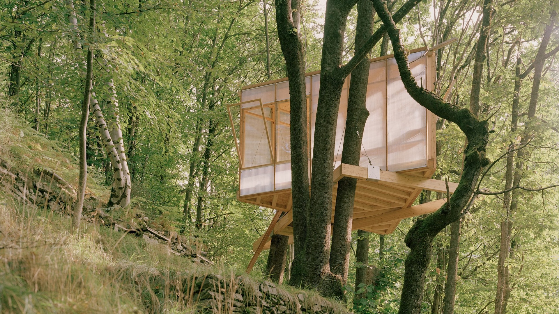 Tandis que le feuillage de la forêt environnante protège la cabane perchée du soleil en été, en automne et en hiver, le soleil peut y pénétrer et réchauffer l’espace. Cela offre des conditions idéales pour la contemplation, la lecture et l’écriture.