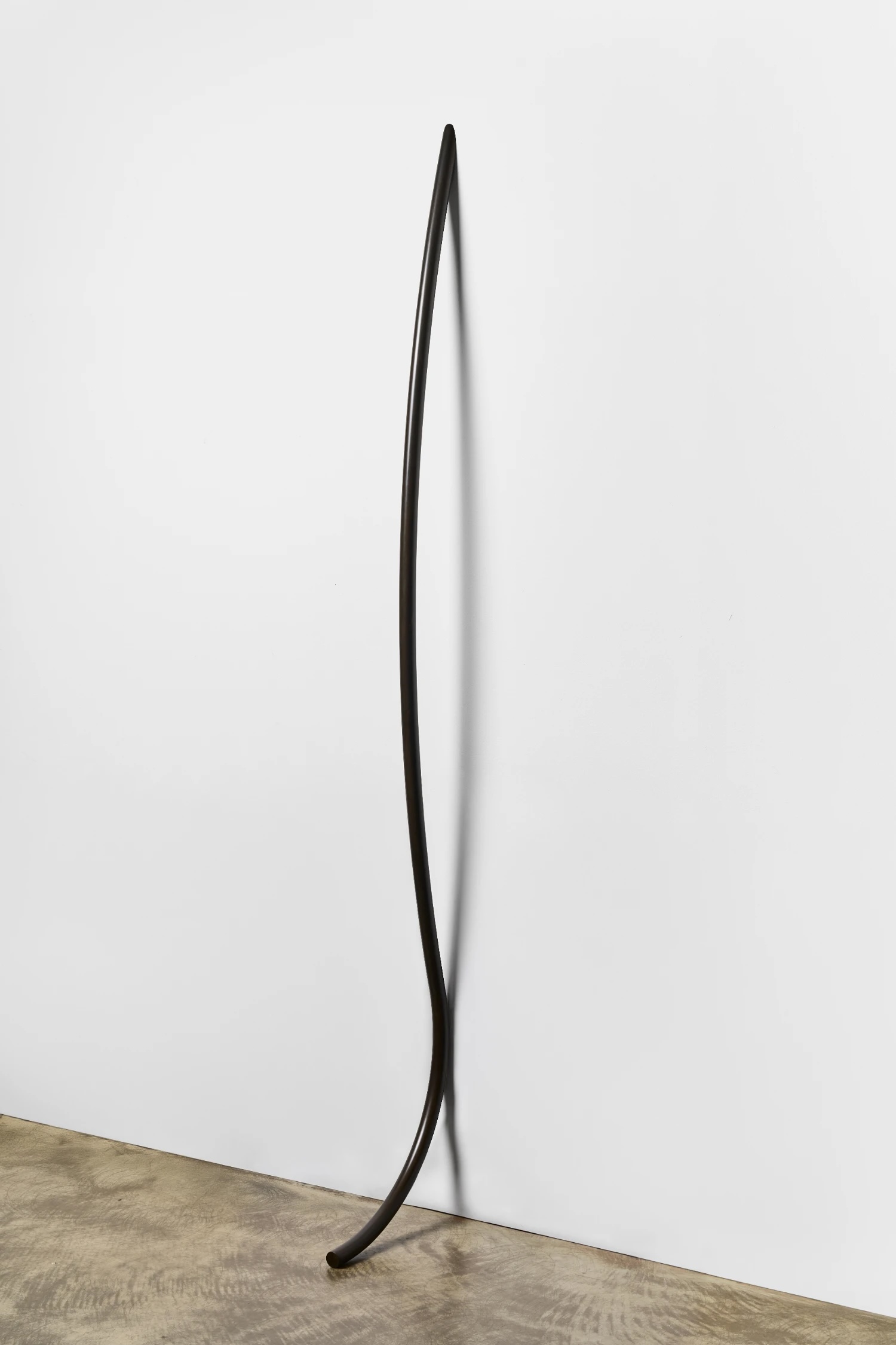 La longue pièce effilée appuyée contre le mur semble presque un métronome d’intention. Son arc subtil paraît moins sculpté que façonné avec soin, son ombre servant de seconde ligne tracée par le temps. Elle nous rappelle que le temps n’est pas seulement mesurable, mais aussi spatial – que la forme elle-même peut émerger de la lente interaction entre la gravité, la matière et le toucher.
