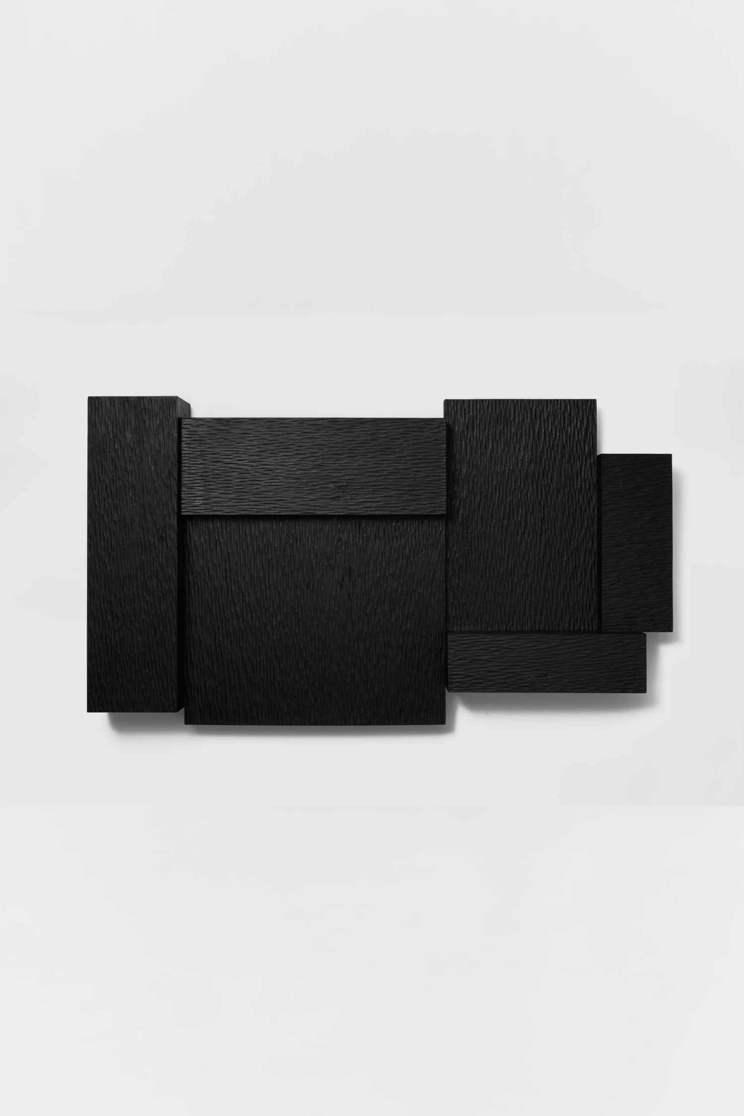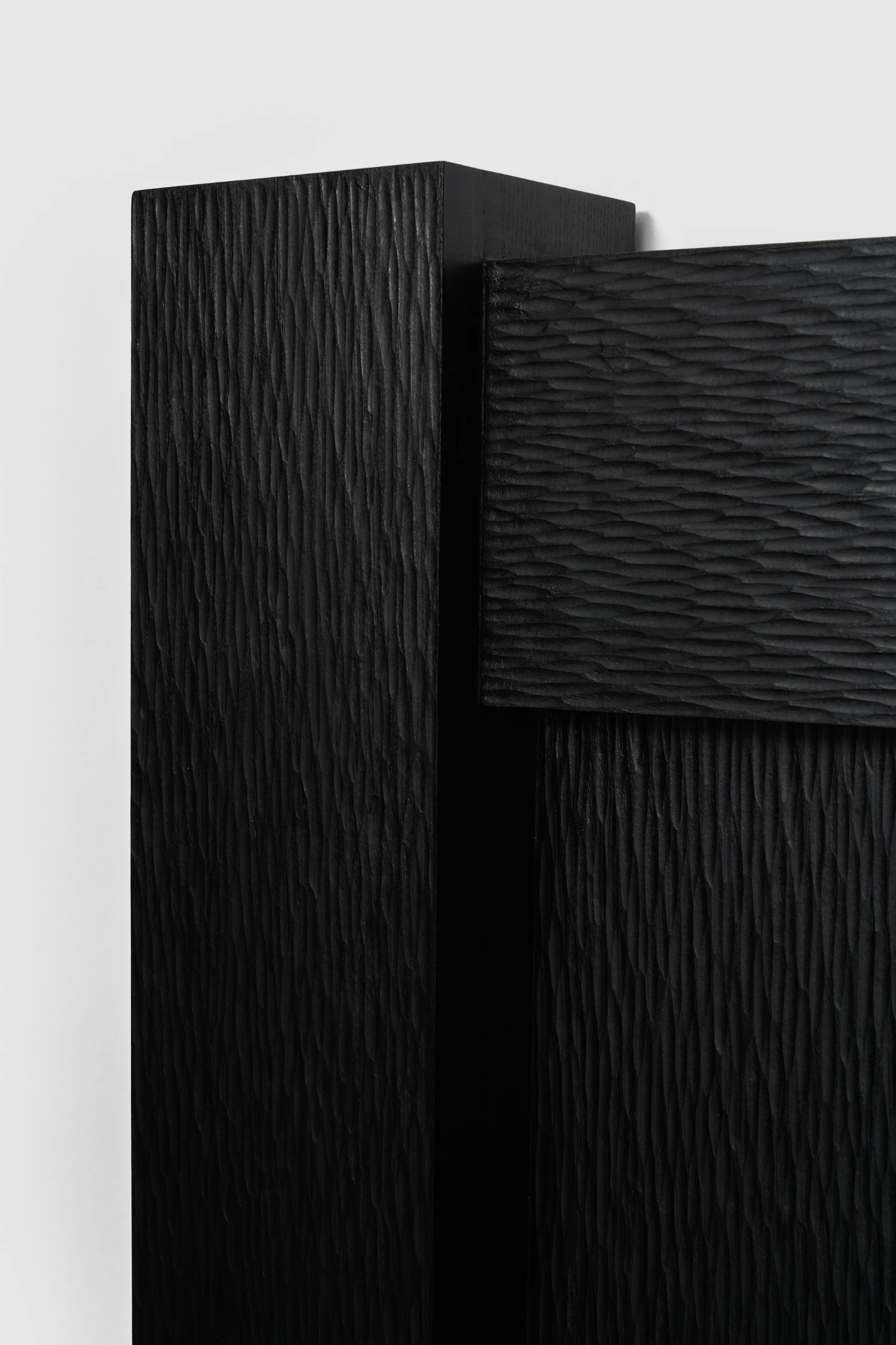 Ce qui frappe, c’est la manière dont Chaeyoung Lee bouleverse la hiérarchie habituelle entre forme et procédé. Les surfaces ébénisées, notamment sur les compositions rectangulaires, ne sont pas perçues comme des finitions, mais comme des strates. Le choix du hêtre, un bois clair qui exige un travail presque excessif pour atteindre une obscurité totale, devient une posture esthétique. Ici, le noir n’est pas une couleur, mais une durée sédimentée, fruit de la persévérance. Même l’uniformité de la tonalité est trompeuse ; de subtiles variations subsistent, révélant comment la matière dialogue avec la manipulation plutôt que de s’y soumettre.