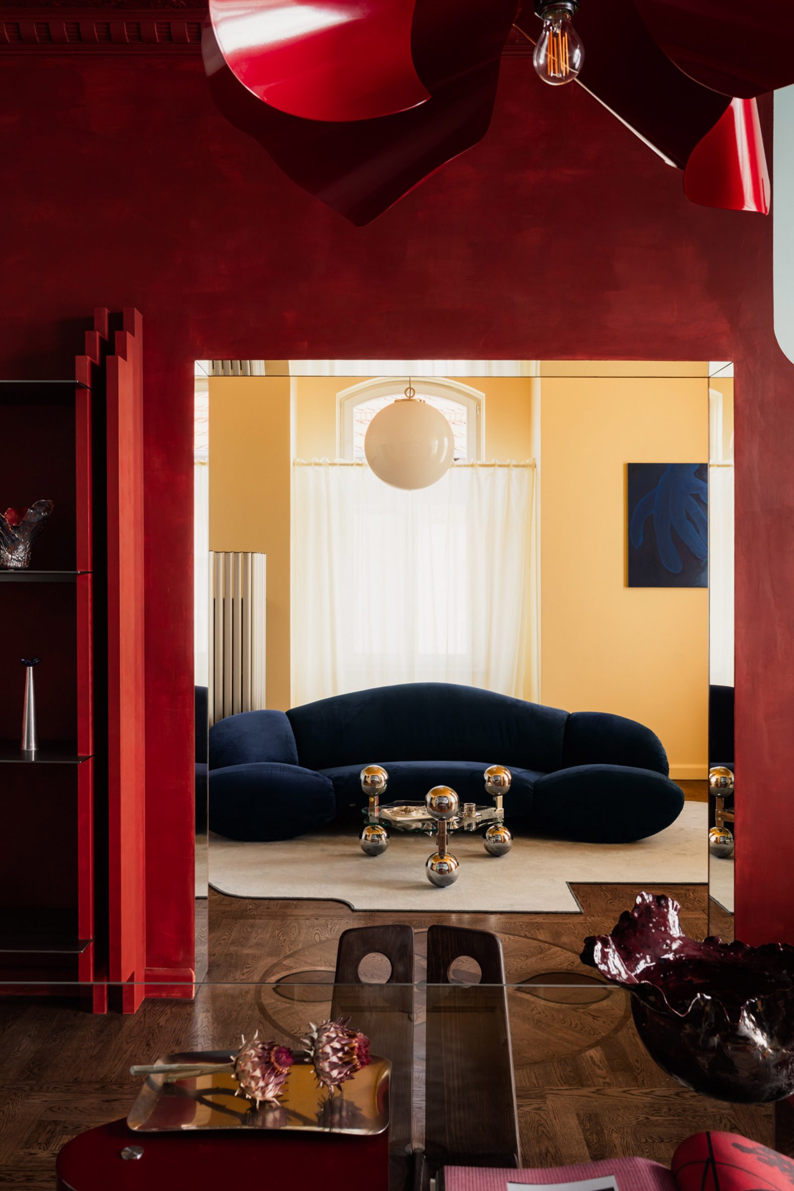 Monika Rogusz-Witkoś de COI Studio, basé à Wrocław, a choisi des pans de bois aux couleurs éclatantes, du velours et de la soie pour créer cet appartement sculptural, sensuel et légèrement surréaliste à Poznań, en Pologne.