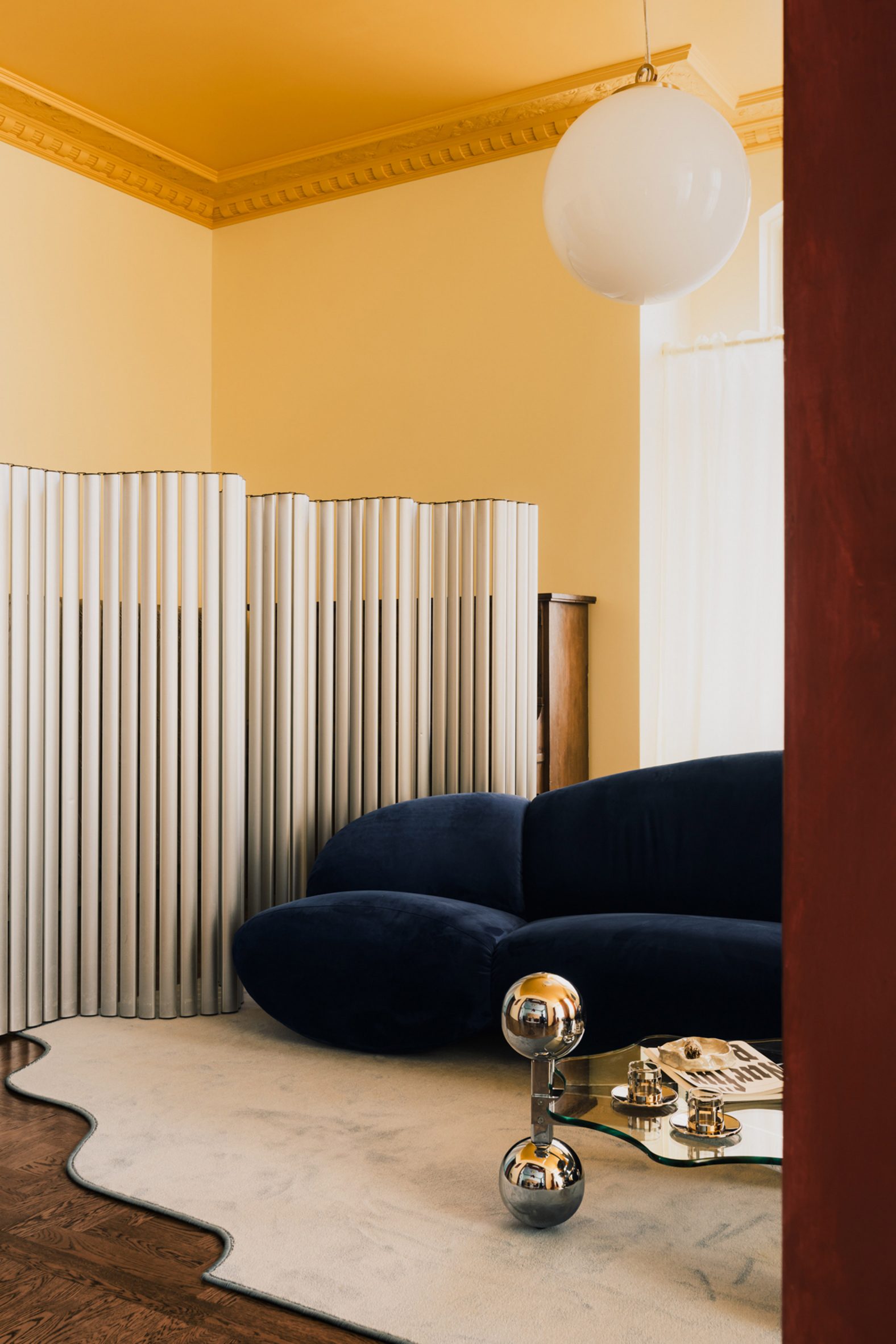 La designer précise que le reste du mobilier de l’appartement, composé de pièces vintage datant des années 1960 et 1970, a été soigneusement sélectionné pour coexister naturellement avec ses créations sur mesure.