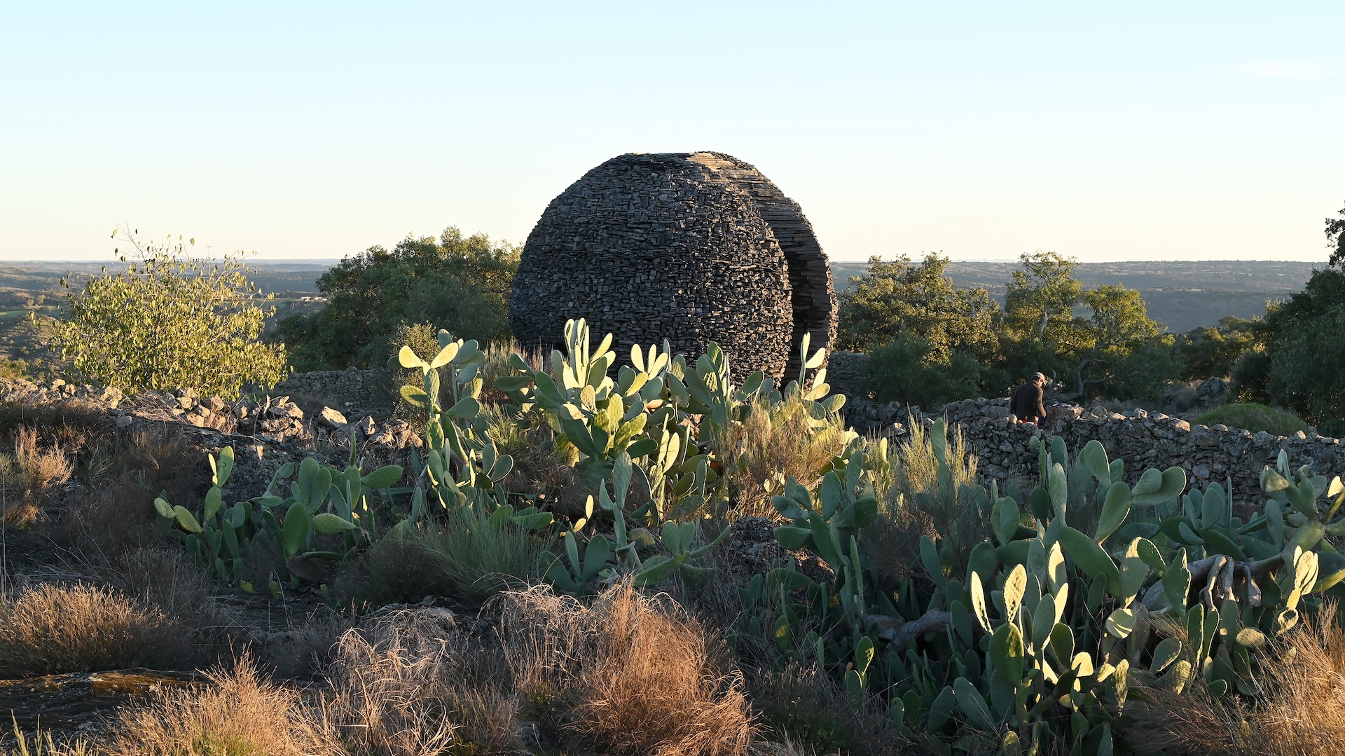 L’Atelier YokYok vient de nous partager sa dernière réalisation dans le paysage de Salvaterra do Extremo, à l’extrême est du Portugal. Une sphère de cinq mètres de diamètre, construite pierre à pierre en schiste noir local, sur un ancien site d’élevage aujourd’hui abandonné.