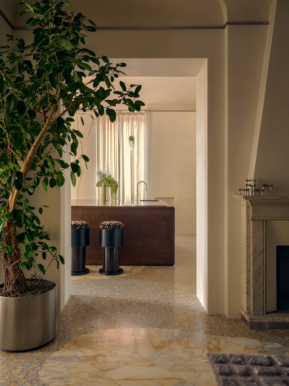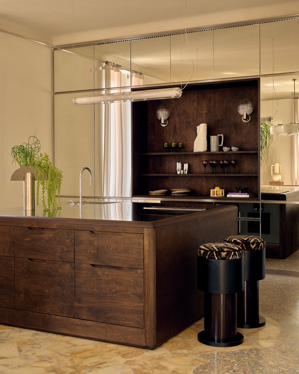 L’appartement reflète la vision du design intérieur du duo, alliant narration et expérience sensorielle, passé et présent.