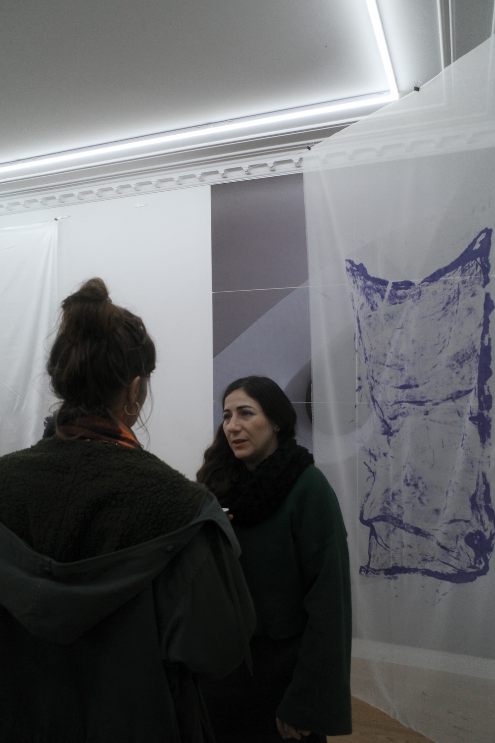 Les monotypes semi-transparents de Mayia Hadjigeorgiou flottent dans l’espace, portés par l’air. Tantôt proches, tantôt lointains, ils murmurent comme des souvenirs à peine formulés. Les images, à la fois nettes et floues, traduisent un phénomène fascinant : passé et futur, loin de s’opposer, se compressent sur un même plan perceptif.