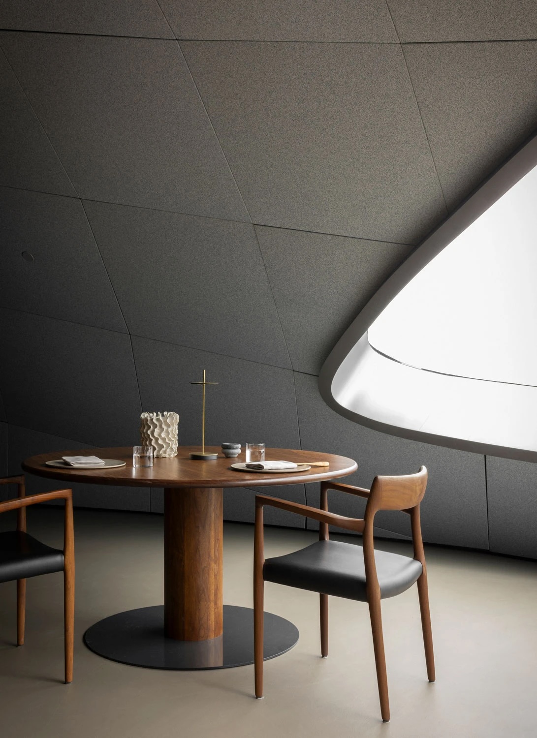 À l’intérieur de cette forme insolite, Norm Architects a dû relever un défi inhabituel : comment créer une atmosphère chaleureuse dans un restaurant étoilé au Michelin, alors que l’architecture mise avant tout sur le spectacle ?