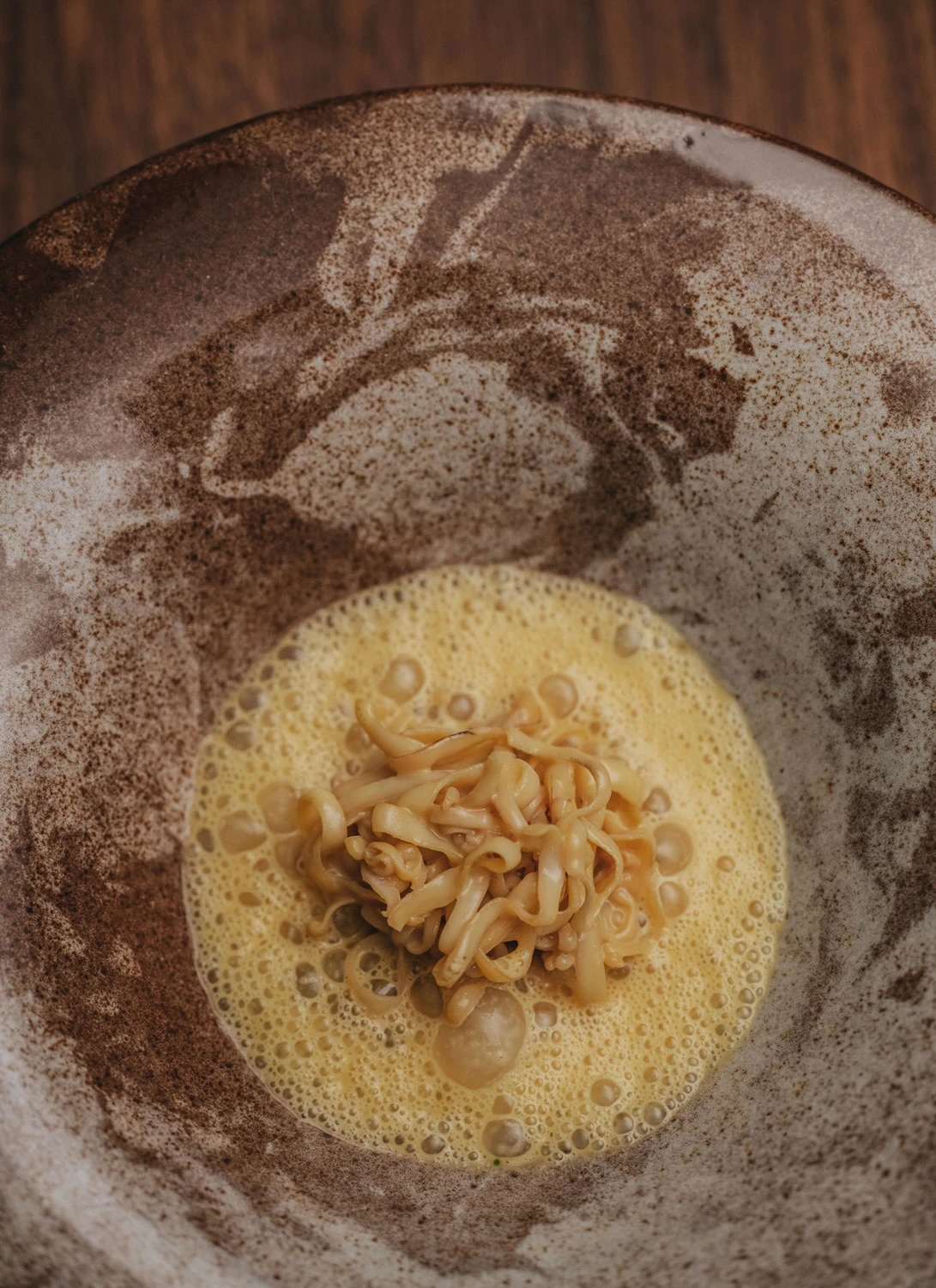 Le mobilier sur mesure habille la salle à manger d’une autorité discrète, propre aux objets conçus pour un lieu unique. Chaque pièce trouve un équilibre subtil entre le caractère industriel du bâtiment et l’intimité requise pour un menu dégustation de trois heures. Les proportions semblent pensées non seulement pour le confort, mais aussi pour la conversation : des tables qui invitent à s’y pencher, des chaises qui incitent à s’y détendre.