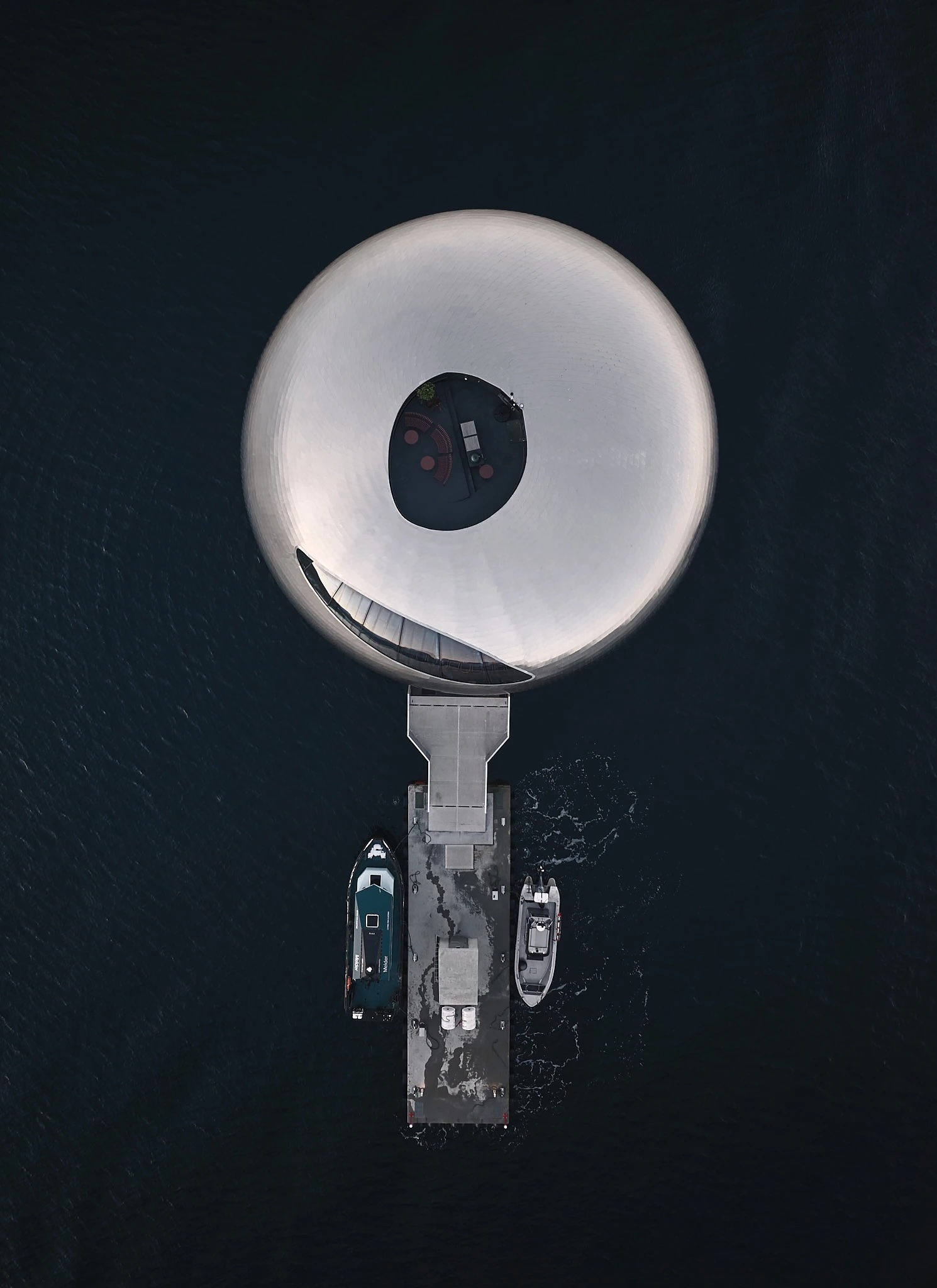 La solution réside dans le contraste des matériaux. Là où l’extérieur, signé Kvorning Design, présente une géométrie rigoureuse et des reflets métalliques, l’intérieur, offre noyer, laine et chaleur. Des moquettes moelleuses absorbent les pas. Des sièges capitonnés accueillent les invités. L’effet est celui d’un cocon protecteur, un havre de paix au sein d’un lieu qui pourrait être un vaisseau spatial ou un sous-marin.