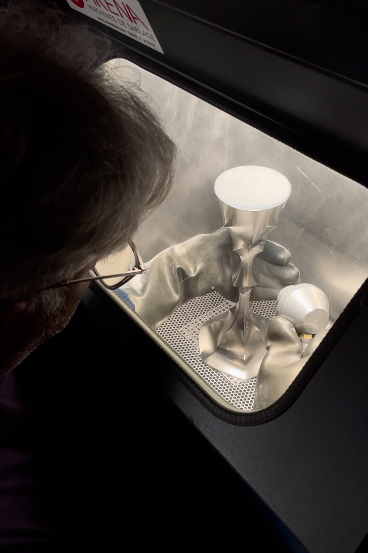 Le calice et la patène sont réalisés en laiton palladié, avec une dorure en palladium légèrement satinée, obtenue par électrolyse et microbillage. L’usinage CNC et la finition sont confiés à deux entreprises françaises labellisées Entreprise du Patrimoine Vivant, à l’image même du chantier de restauration de la cathédrale, où innovation et tradition avancent de concert.