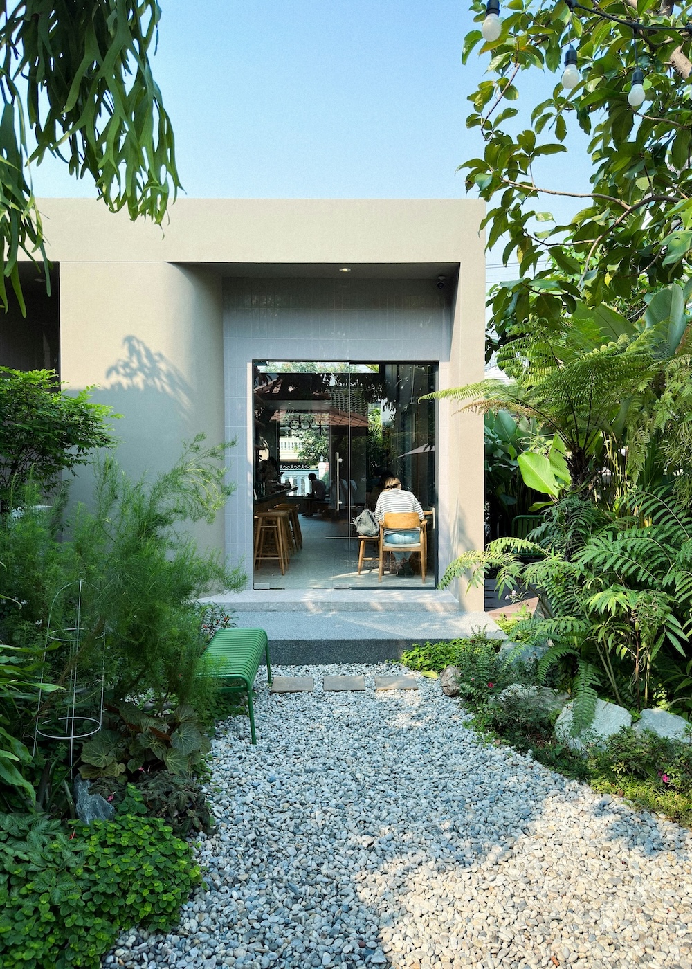 Une allée bordée d’arbustes parfaitement identiques et régulièrement espacés pose les bases de la structure de votre jardin. À l’inverse, une collection hétéroclite de petits végétaux donne une impression de profusion, plus inhabituelle dans les extérieurs design.