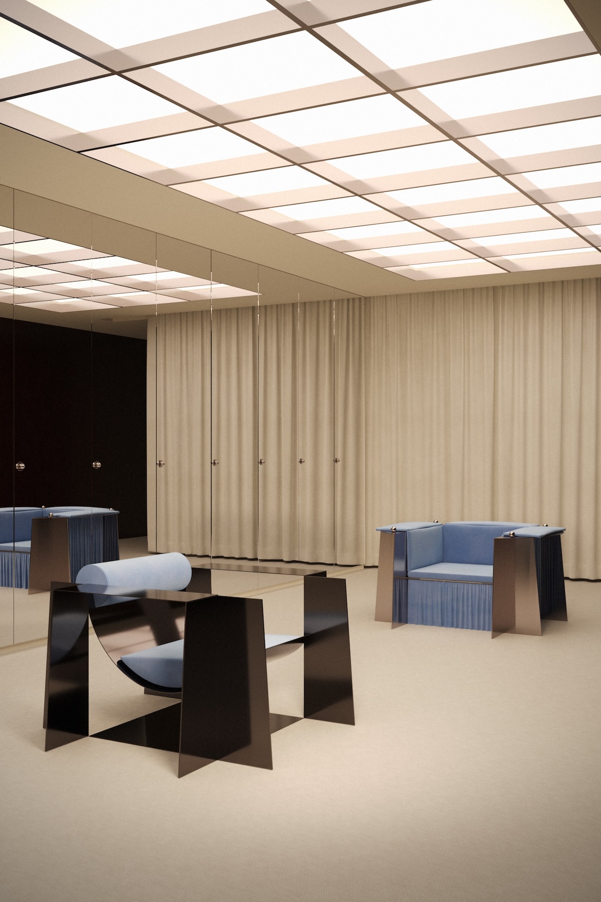 La fabrication est assurée en France, point d’orgue pour le studio pour une logique d’exigence et de proximité : l’atelier Bylab, près d’Angers, réalise la partie métallique avec une précision qui révèle la netteté des lignes ; de nouveau Florence Hamon, à Nantes, signe le travail textile et donne aux drapés leurs volumes subtils.