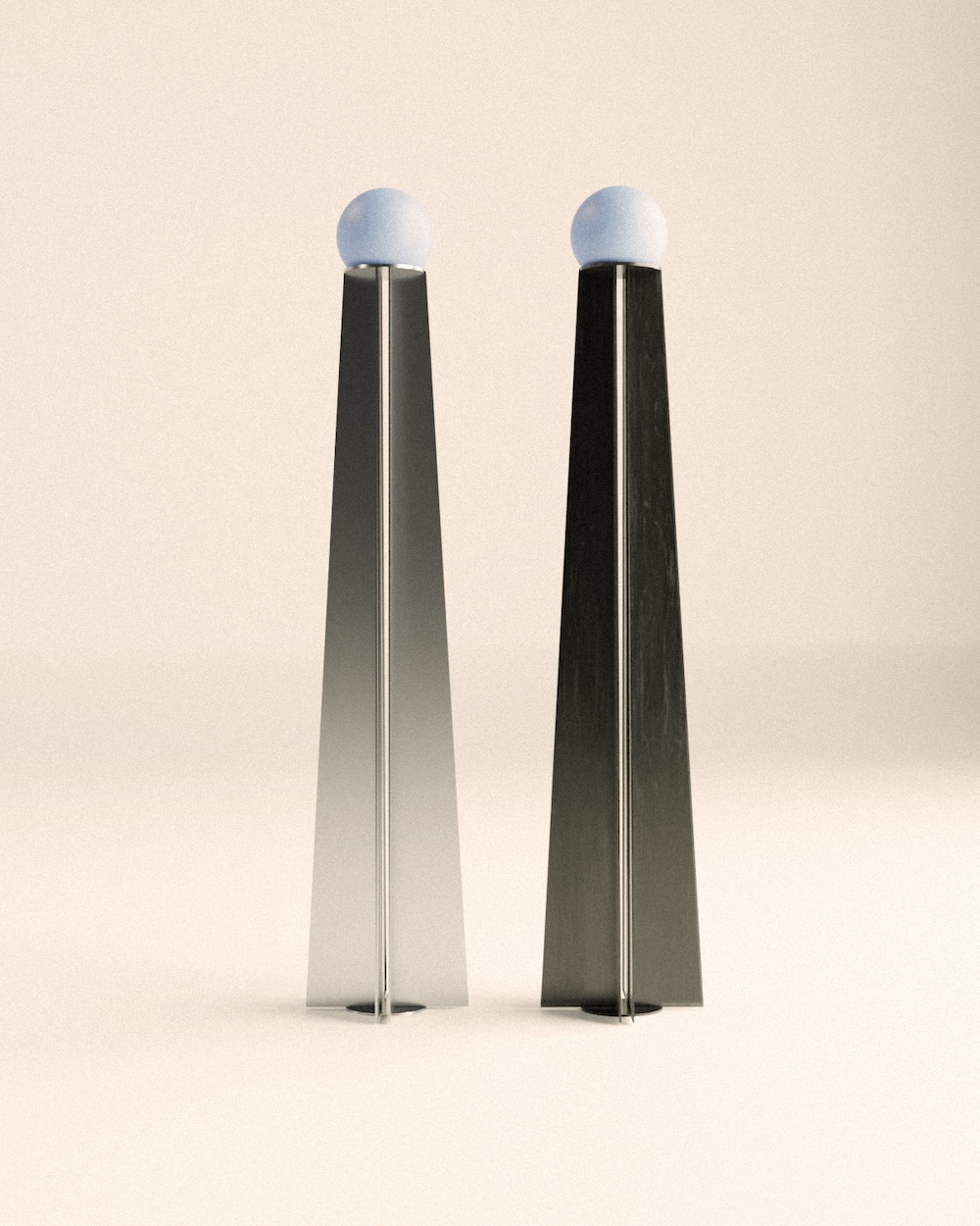 Ensemble, ils recomposent un vocabulaire formel qui fait écho aux années 80 tout en s’inscrivant dans une écriture résolument contemporaine. Les cônes et les boules, déjà présents dans 1976, forment un langage que le studio développe collection après collection, comme un alphabet sculptural. Ici, ils deviennent plus élancés, plus affirmés, presque architecturaux.