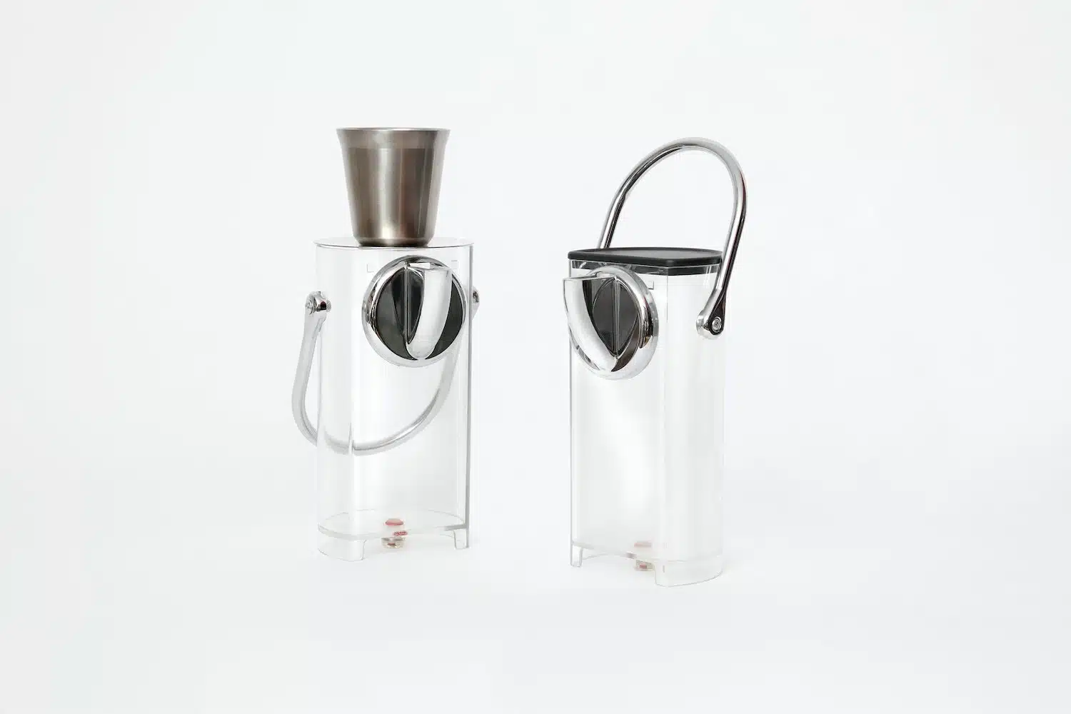 À l’époque, la volonté du studio était déjà là : intégrer de l’aluminium issu du recyclage des capsules dans la collection. Mais les complexités de la filière de recyclage rendront la chose impossible, et c’est finalement l’inox qui sera retenu pour concevoir une tasse à double paroi en forme de capsule permettant de garder le café chaud tout en préservant les doigts d’une brûlure , une touillette inspirée des bûchettes de sucre, et des distributeurs à capsules rappelant les étuis emblématiques de la marque.
