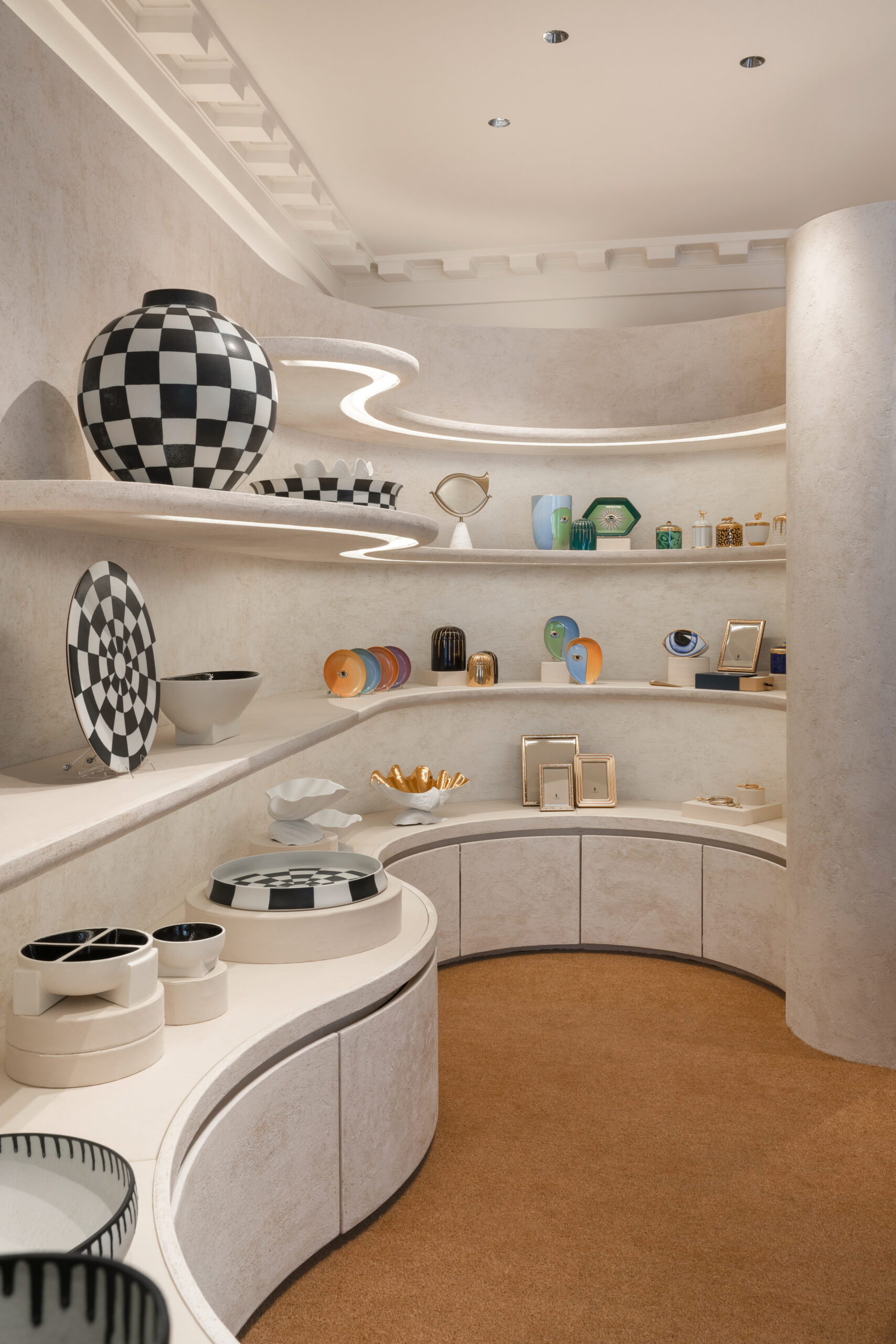 La vitrine, élément fondateur du commerce physique, occupe une place centrale dans cette réflexion. Delclaux la réinvente comme un dispositif narratif où l’identité de marque prime sur l’accumulation. Le retail cesse d’être un espace de présentation pour devenir un espace d’orientation, capable d’exprimer une vision avant même d’accueillir le visiteur.