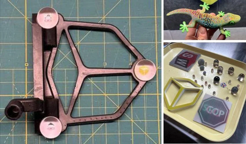 Cependant, l’effet lenticulaire n’est pas strictement réservé aux machines PolyJet haut de gamme. Jared Trotter, ingénieur chez GoEngineer, a présenté un exposé sur l’effet lenticulaire lors du salon 3DEXPERIENCE World en 2026. Il a expliqué que la création de cet effet par impression 3D n’était pas l’apanage de la technologie PolyJet : « Il n’est pas nécessaire de tout réaliser avec ce support spécifique, ce type d’impression particulier. L’important est de créer la géométrie de la bonne manière et d’utiliser le bon matériau. » La géométrie sous-jacente et les images entrelacées peuvent être produites à l’aide d’une imprimante FDM de bureau. Tant que la géométrie physique est correctement créée et associée à un matériau transparent approprié pour la couche supérieure, vous pouvez obtenir l’effet lenticulaire sans avoir besoin d’un équipement industriel.
