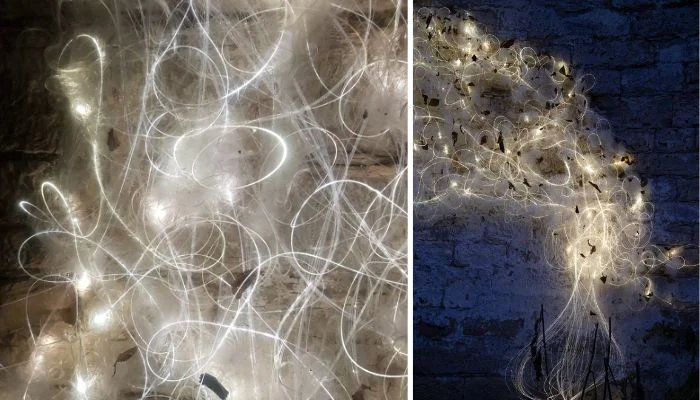 À gauche : LIGHT TRACE n° 10 en détail (photo : ATARA design) ; à droite : LIGHT TRACE n° 10 en gros plan (photo : Gudrun-Barenbrock)