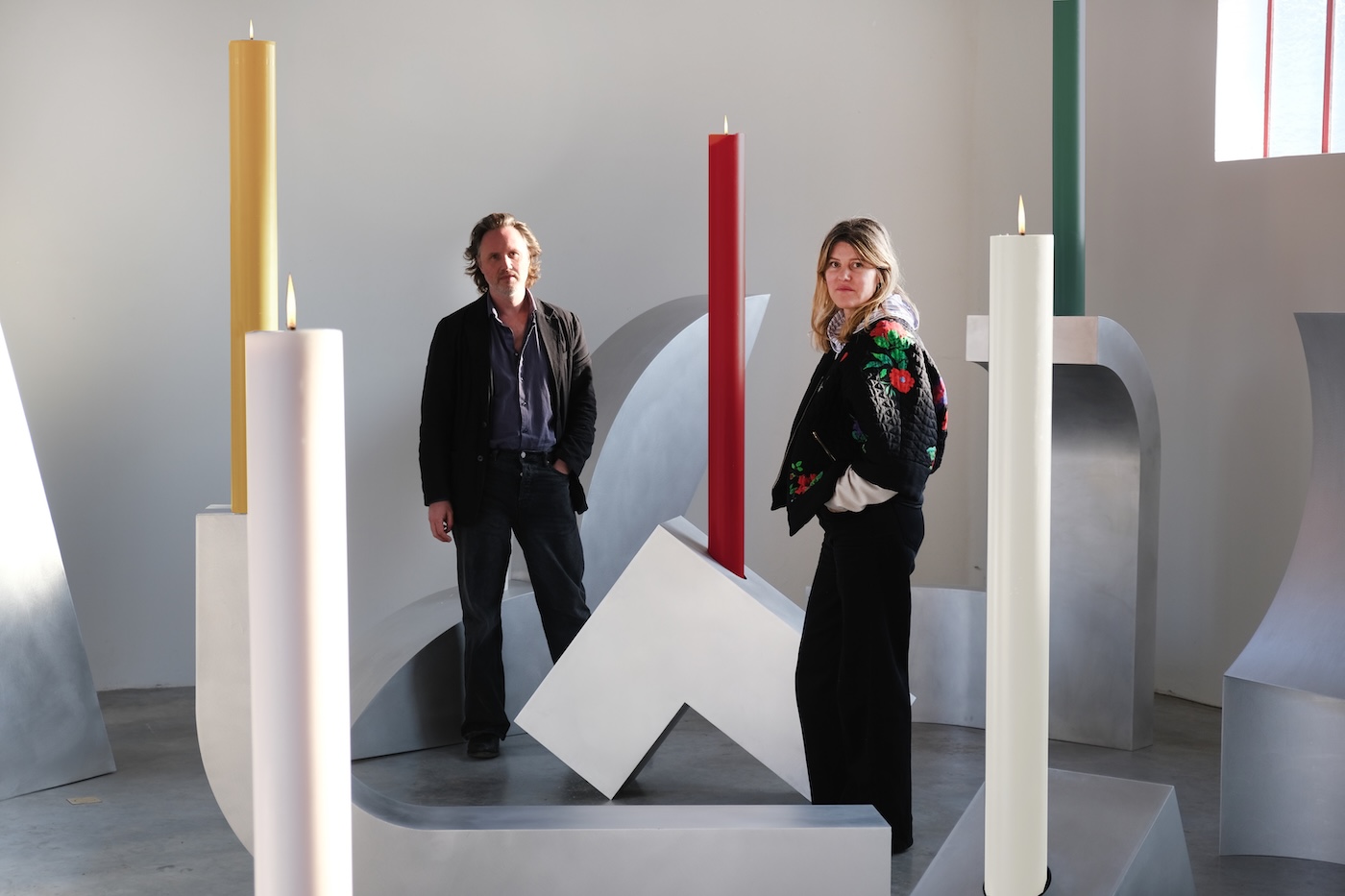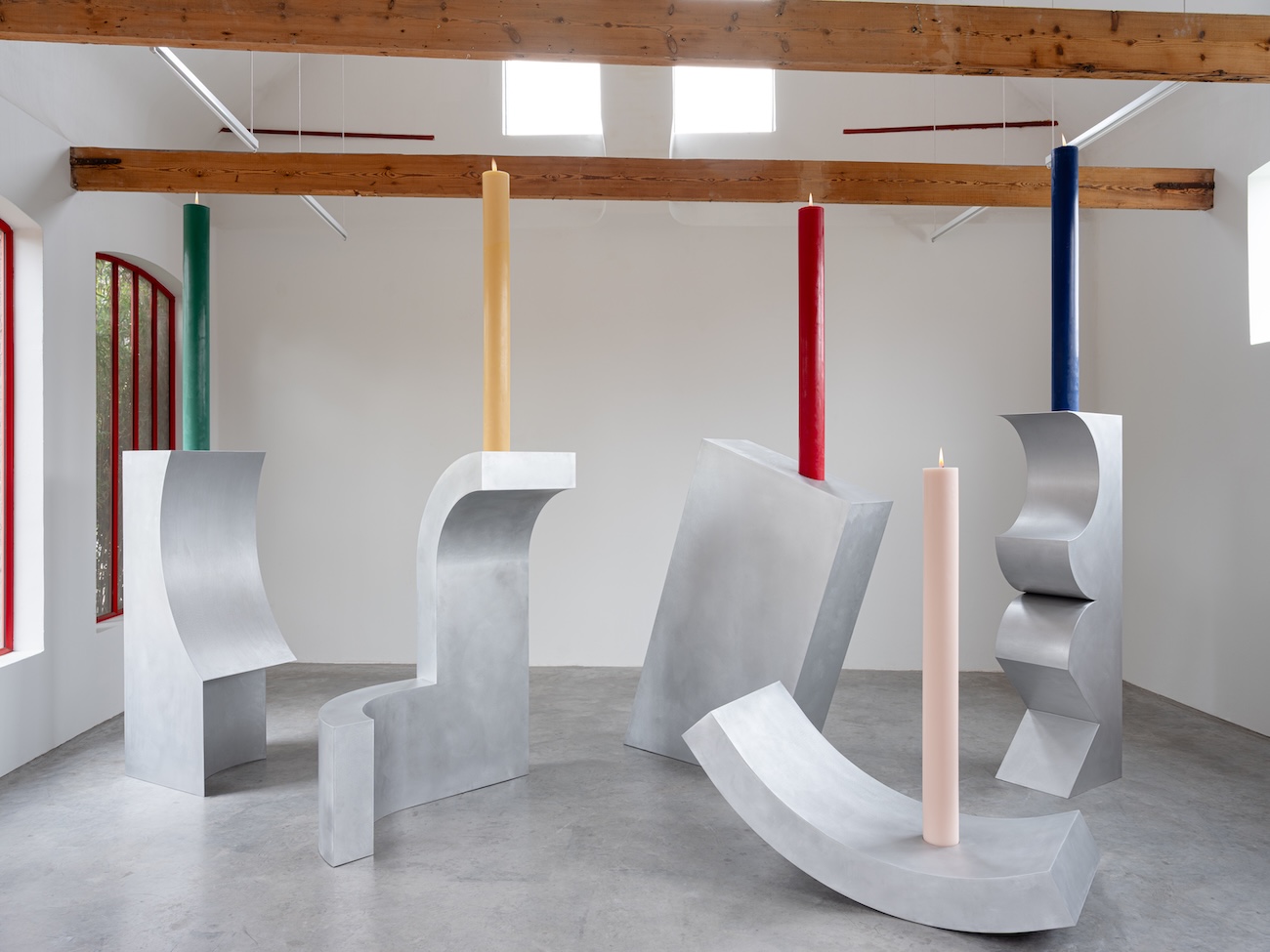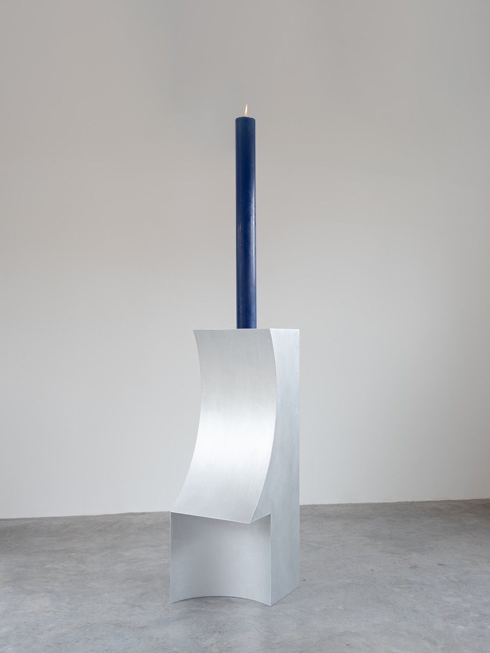 L’installation se déploie comme un ensemble cohérent d’éléments distincts : chaque œuvre conserve son autonomie tout en dialoguant avec les formes environnantes. Une grande bougie colorée couronne le sommet de chaque structure, introduisant une dimension temporelle. Au fur et à mesure que la bougie se consume, l’objet subit une transformation lente et irréversible. Ce qui semble statique au départ devient sujet au changement.