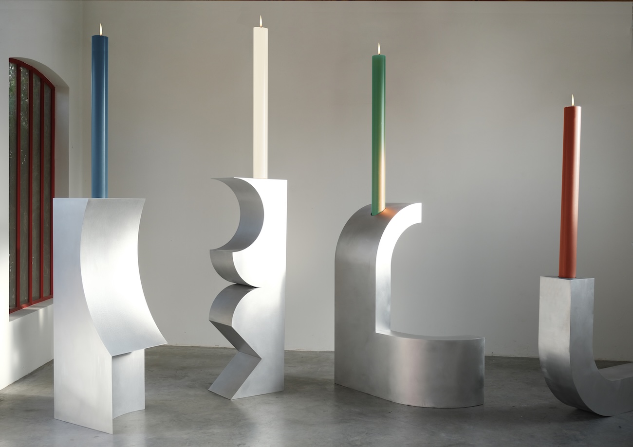 L’usage d’une seule couleur et d’un matériau uniforme; l’aluminium; pour chaque objet renforce leur clarté formelle, en mettant l’accent sur le rythme, les proportions et la composition.