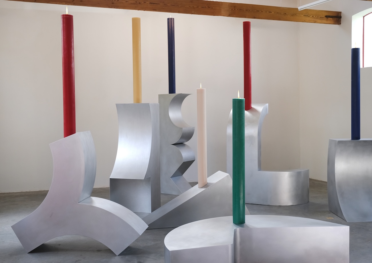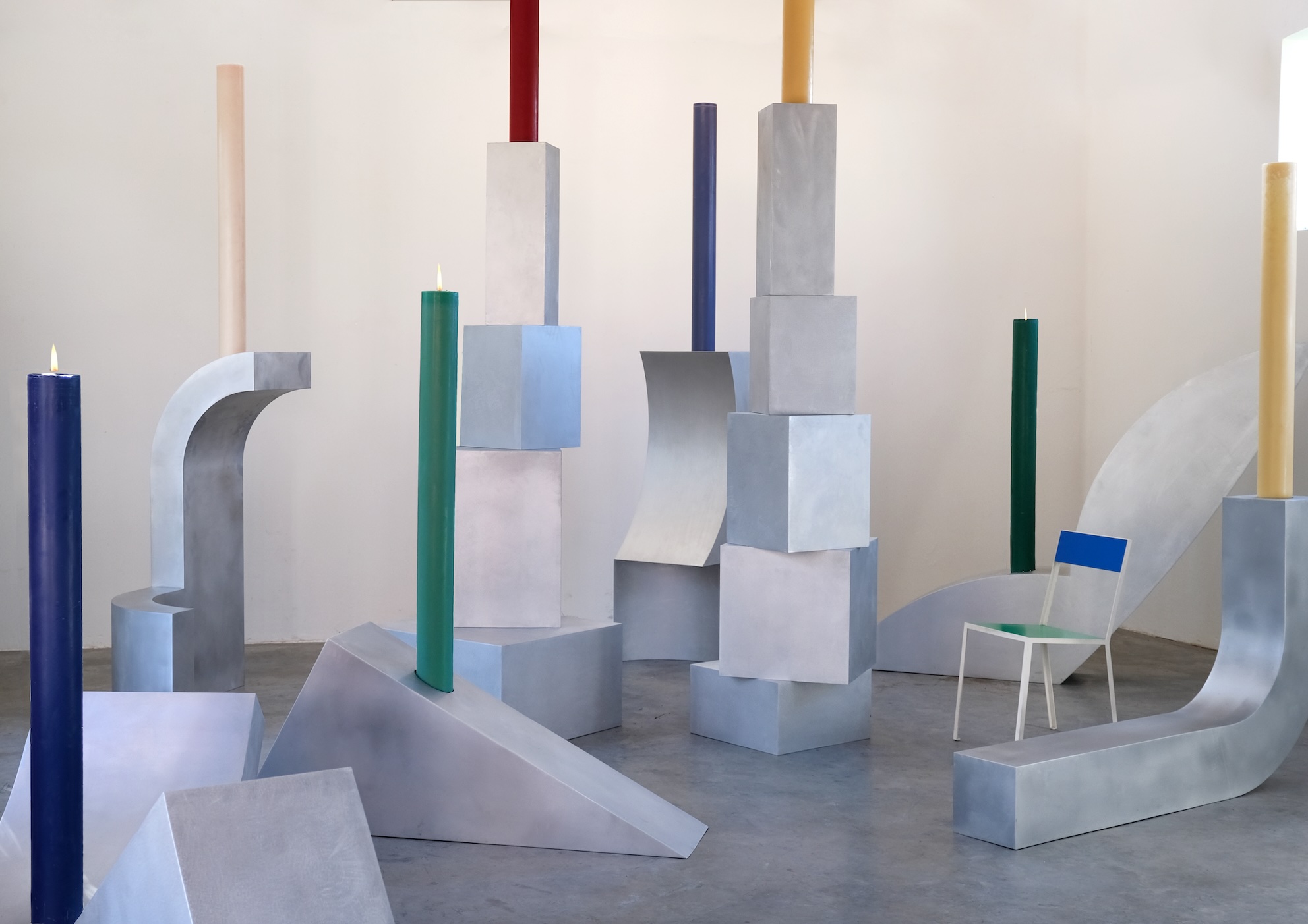 L’exposition présente quinze chandeliers uniques en aluminium, grandeur nature. Chaque forme constitue une ré-interprétation abstraite de motifs récurrents de l’œuvre de Muller Van Severen, ainsi que de formes déjà apparues dans les pratiques individuelles antérieures de Fien Muller et Hannes Van Severen : chaises, armoires, lampes, vases et structures sculpturales.