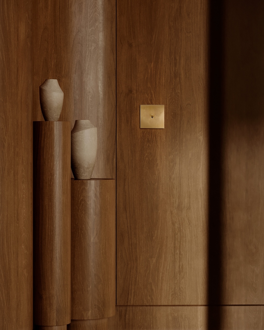 Autre registre, autre écriture : la collection Empreintes a été pensée par les architectes d’intérieur Bruno Borrione et Astrid Dieterlen. Ici, le décor devient structure. Plan, Volume, Angle, Point, Ligne : cinq séries, cinq principes fondamentaux de l’architecture, dont les motifs s’impriment avec précision dans le laiton pleine matière.