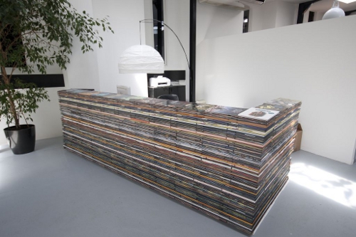 L’agence de production et de post-production Cut and Cook Studio partage ses bureaux avec une société d’édition. Cette proximité a fait naitre une idée des plus originales : réaliser le comptoir d’accueil...
