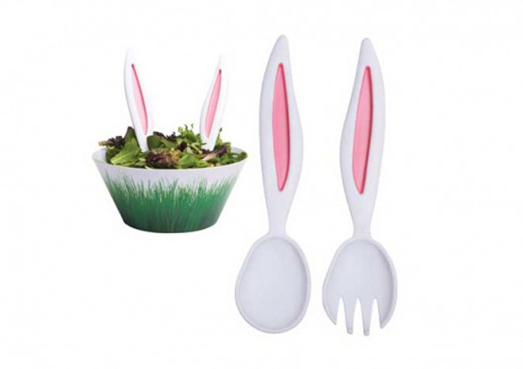 Aujourd’hui je vous présente mon coup de cœur insolite du jour, des couverts à salade représentant des oreilles de lapin. Le rendu est top dans un saladier rempli de salade verte !