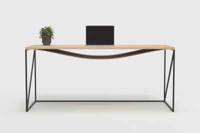 Deux jeunes designers hongrois, Mark Daavid et Bence Kovácsik, présentent PLY. C’est un bureau cintré imaginé pour le PORADA Award 2013, mêlant bois courbé et métal.