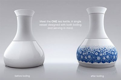One Teakettle est une théière qui permet de faire bouillir l’eau et de servir le thé. Lorsque l’on met l’eau à chauffer, les graphismes commencent à apparaître lentement (ils sont appliqués avec...