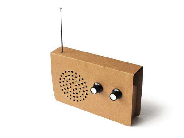 Cardboard radio a été conçue par le designer Christopher McNicholl. C’est une radio essentiellement réalisée en carton, ce qui permet de la recycler facilement en fin de vie.