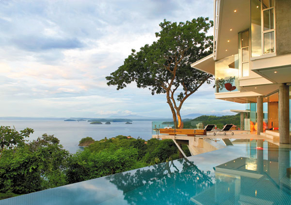 Cette maison, située près du village de El Coco, dans la province de Guanacaste, au Costa Rica, sur une falaise, a une vue spectaculaire sur l’océan Pacifique et sur la côte rocheuse....